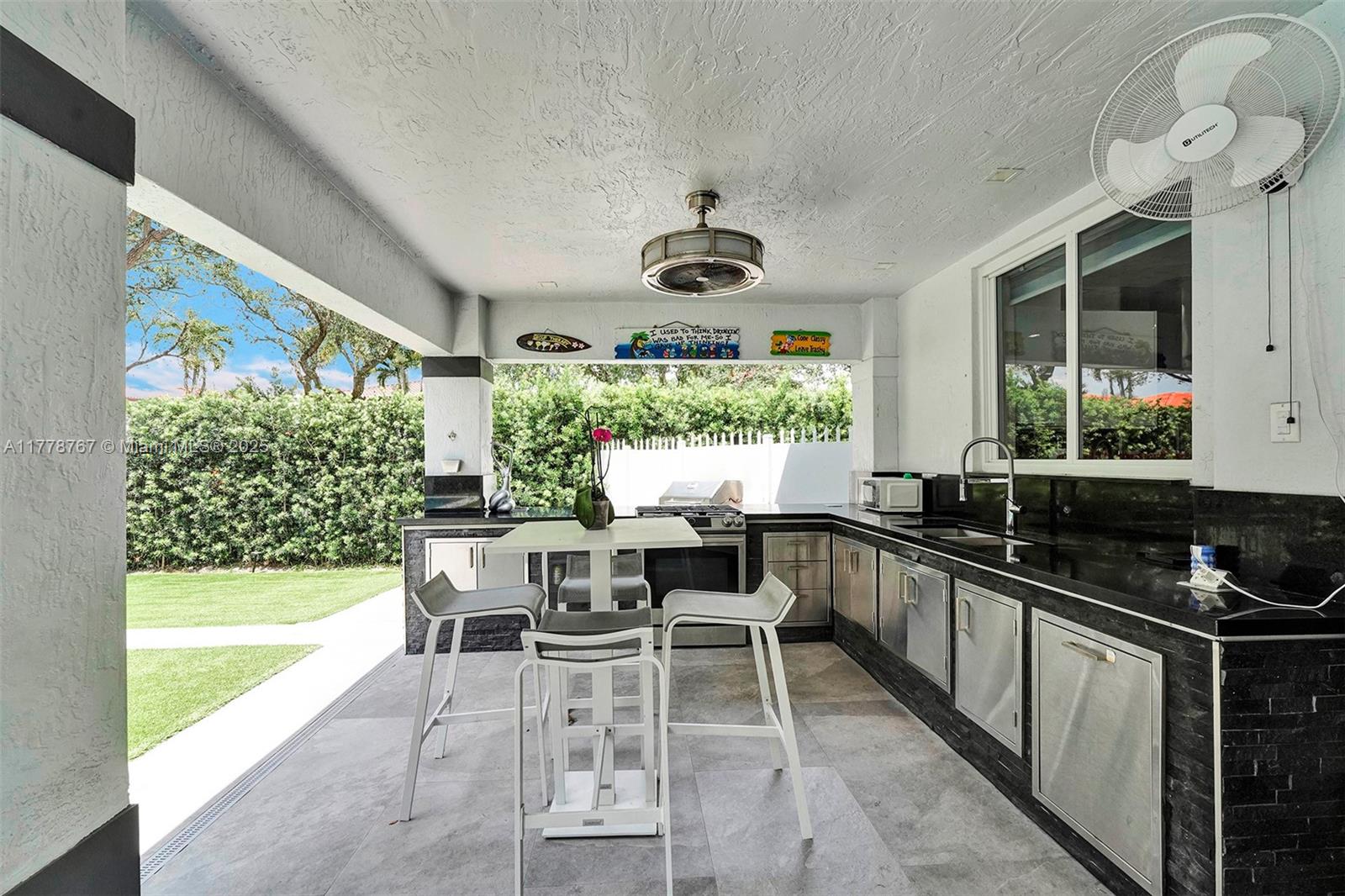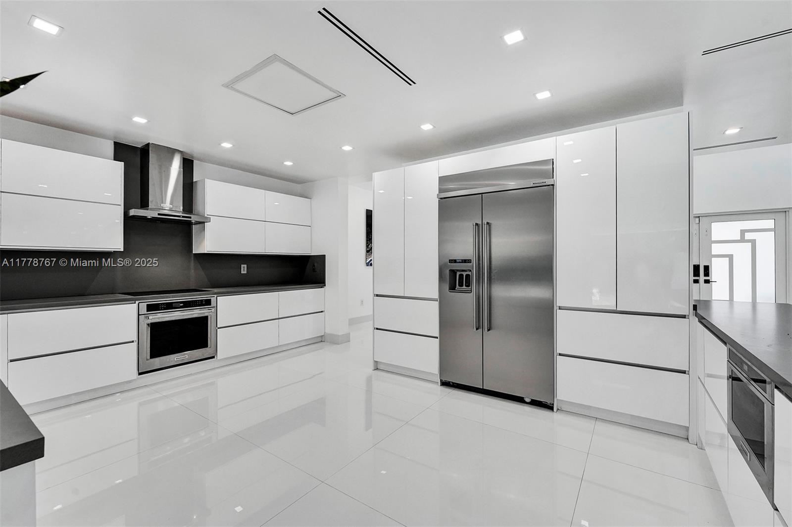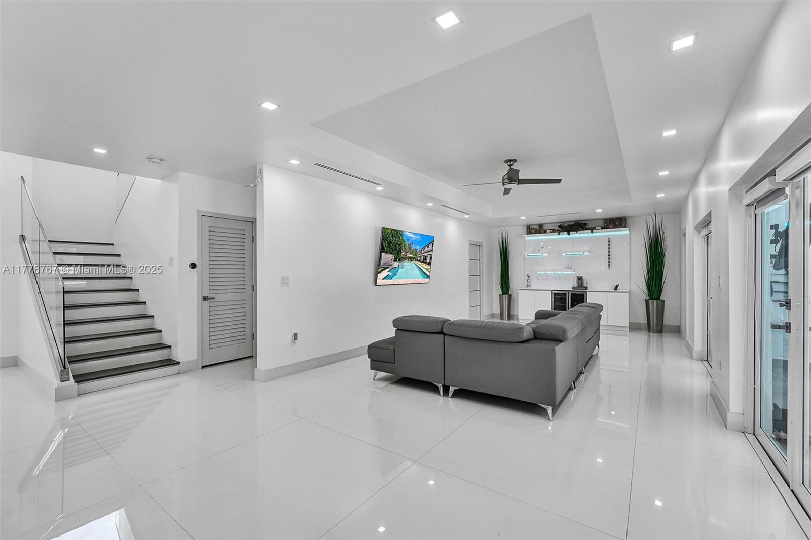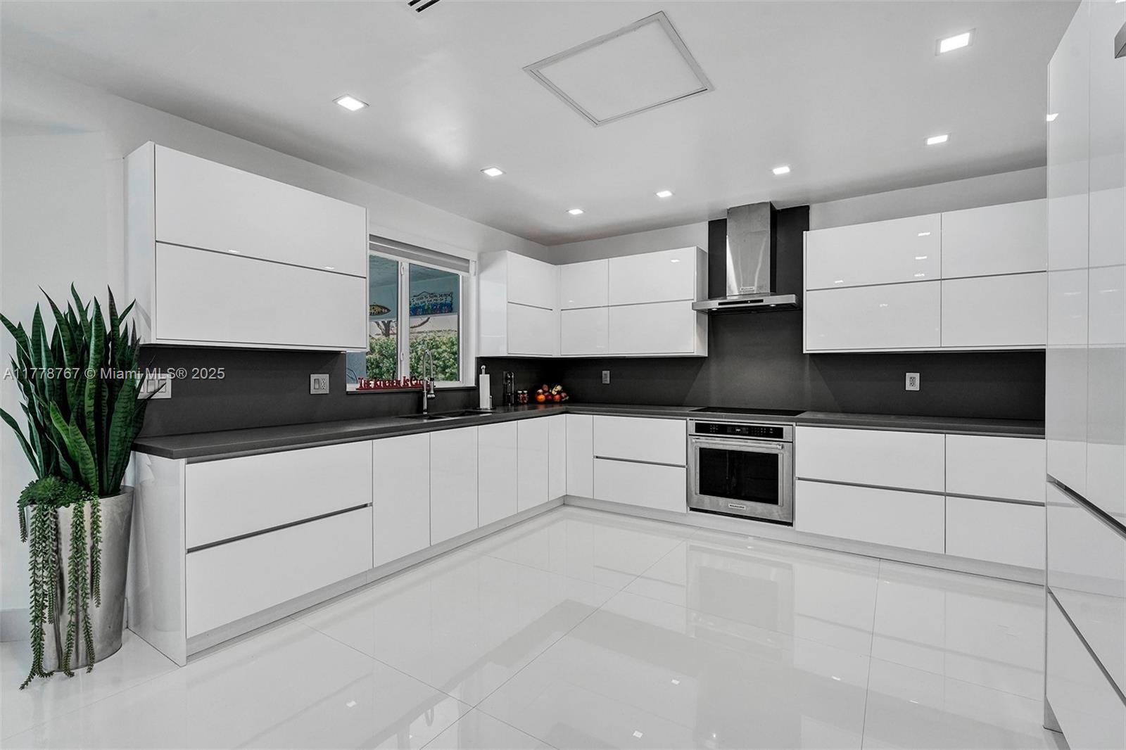Beautiful and spacious Residence in the sought-after Royal Oaks in Miami Lakes. This home seats on a large corner lot with an extra large driveway. It offers three master bedrooms each with large walking closets, plus two more bedrooms, one of them on the first floor. The home has being completely redone with the finest materials and the most modern trends, recessed LED lights through out, impact glass doors and windows, two car garage with galvanized Steel Doors fold-up to open, kitchen with a regal and modern glass island, Italian cabinetry and top of the line appliances. The home is ideally for those looking for luxury living. It also has a large patio area with an oversized heated pool, jacuzzi, expansive cover terrace with full outdoor kitchen, perfect for gatherings.
