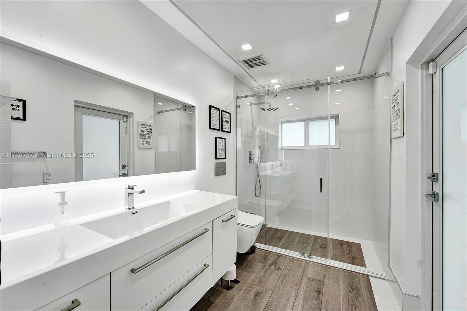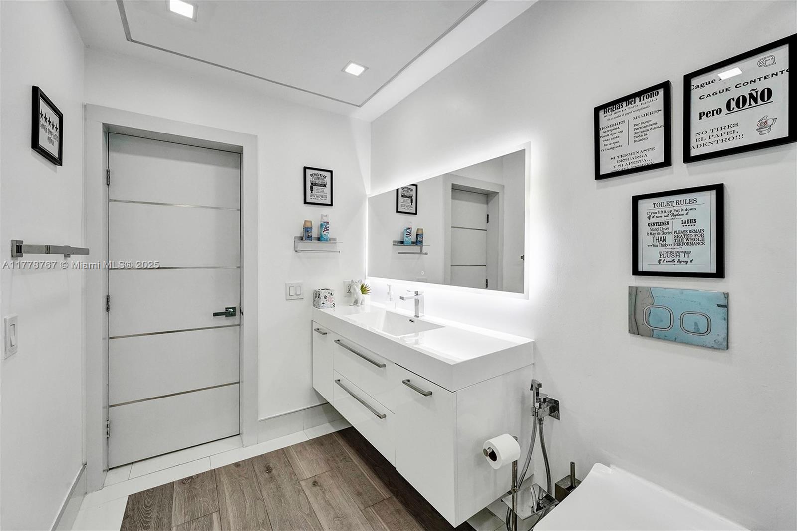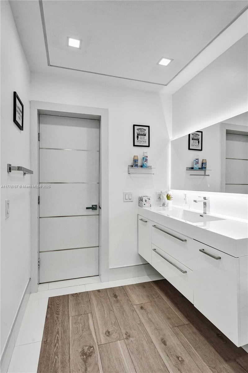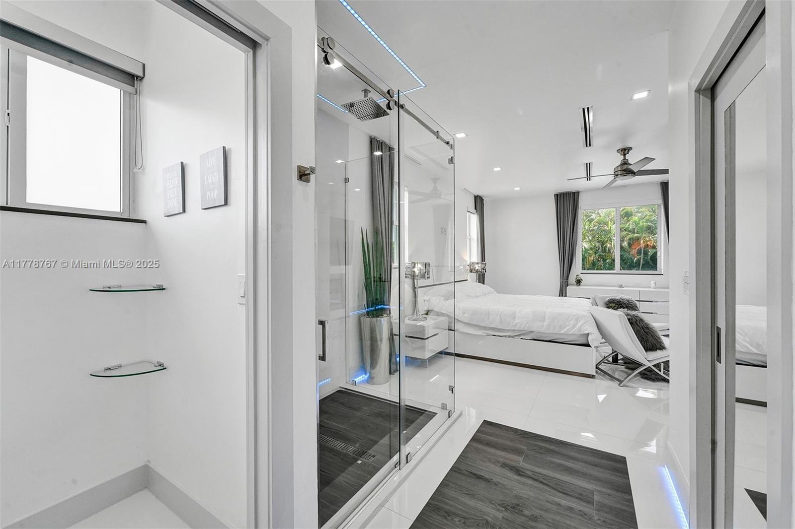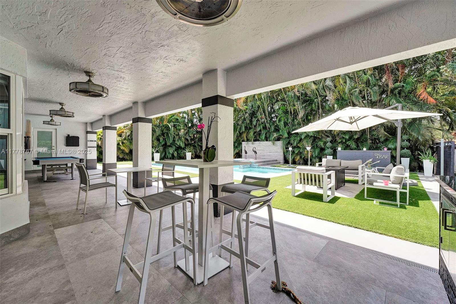 Beautiful and spacious Residence in the sought-after Royal Oaks in Miami Lakes. This home seats on a large corner lot with an extra large driveway. It offers three master bedrooms each with large walking closets, plus two more bedrooms, one of them on the first floor. The home has being completely redone with the finest materials and the most modern trends, recessed LED lights through out, impact glass doors and windows, two car garage with galvanized Steel Doors fold-up to open, kitchen with a regal and modern glass island, Italian cabinetry and top of the line appliances. The home is ideally for those looking for luxury living. It also has a large patio area with an oversized heated pool, jacuzzi, expansive cover terrace with full outdoor kitchen, perfect for gatherings.