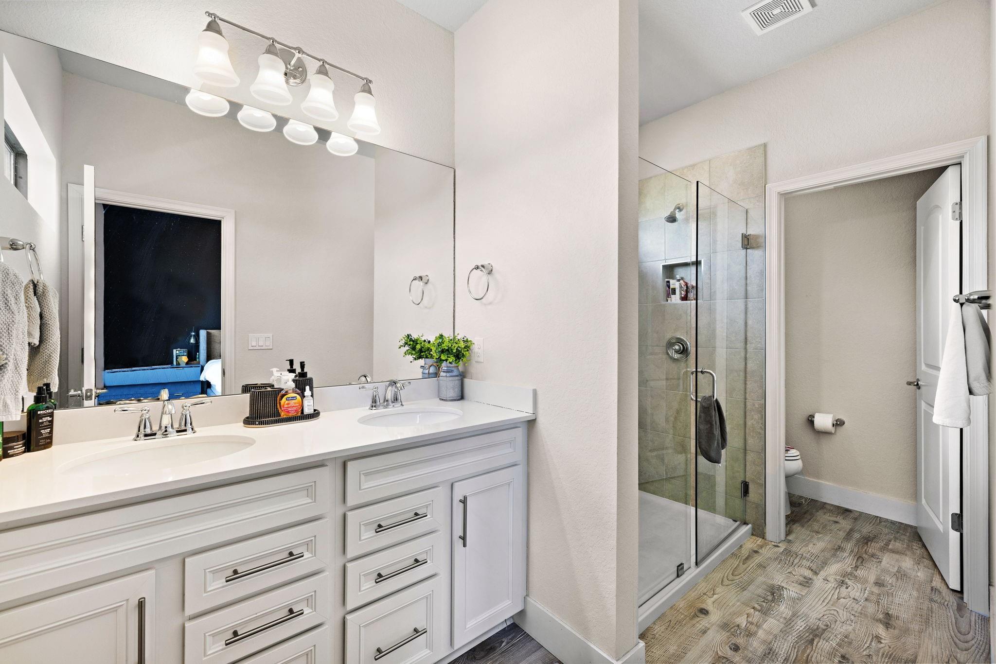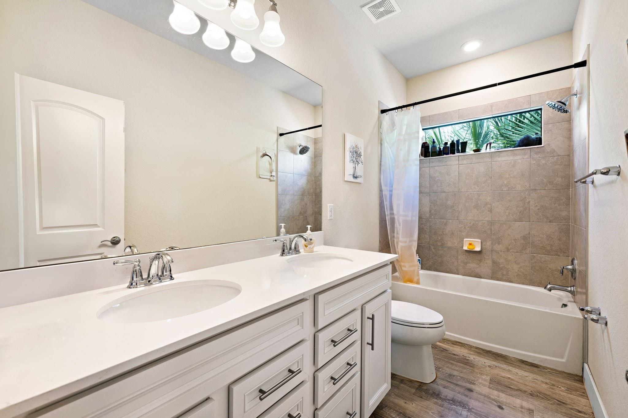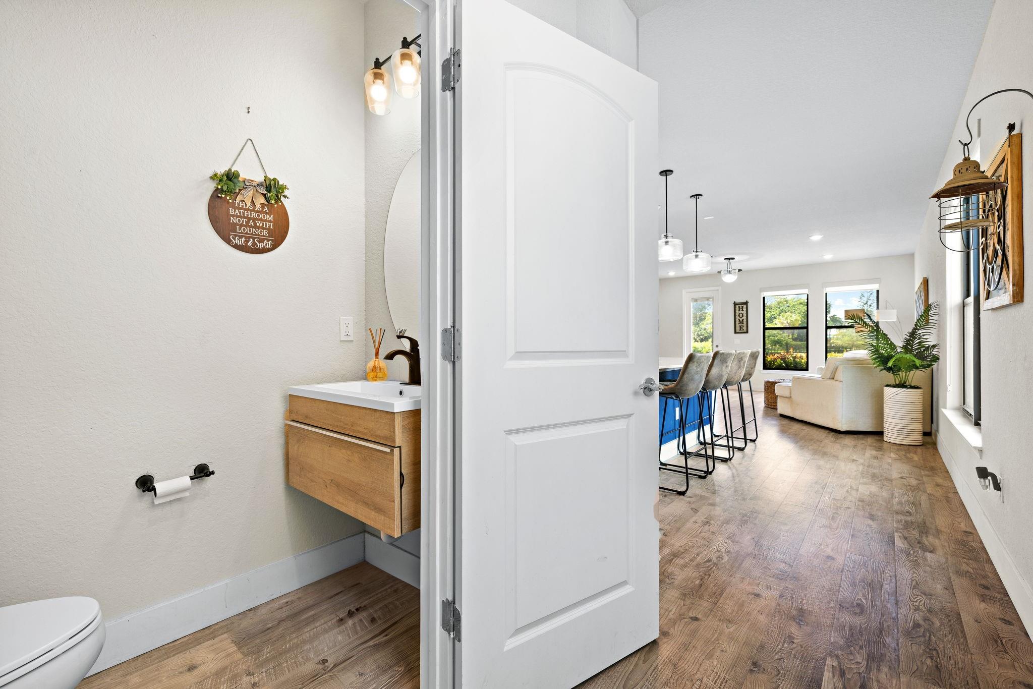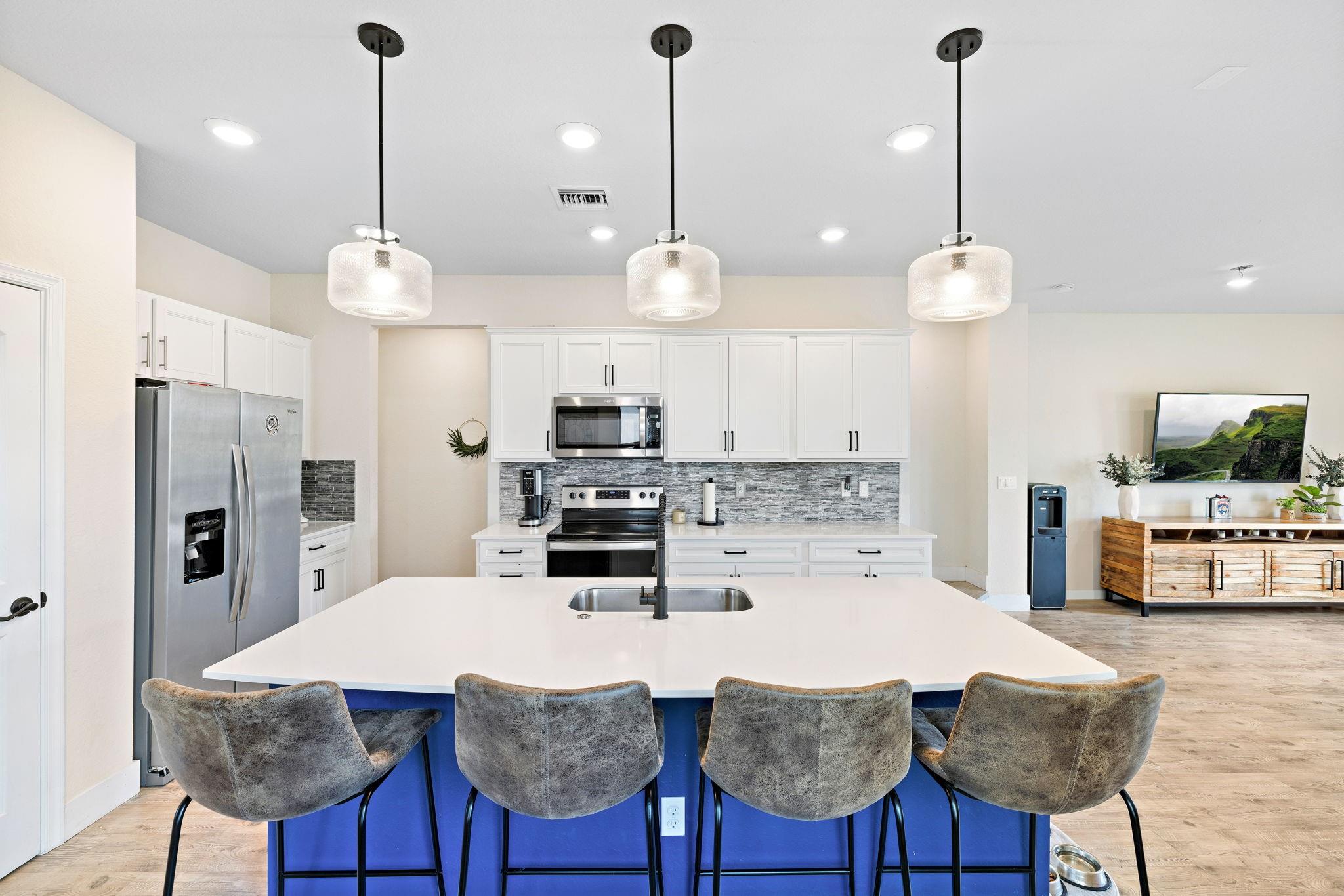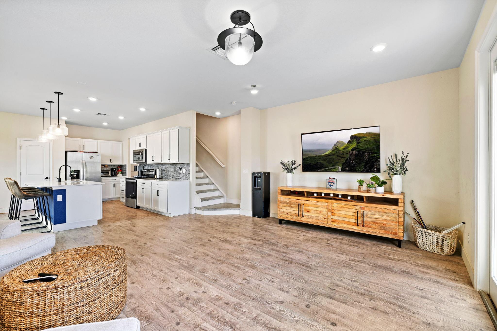 Located in the new Oak Tree community, this 3-bedroom, 2.5-bathroom two-story home offers lakefront views and modern features throughout. Built in 2022, the home includes a 1-car garage, impact windows and doors, and a functional layout designed for everyday living. The kitchen features quartz countertops and stainless steel Whirlpool appliances. A built-in Murphy bed adds flexibility to the space, and the upgraded half bath adds a nice touch for guests. The primary suite includes a built-in entertainment center, plus his-and-her sinks in the master bath. Community amenities include a pickleball court and well-maintained common areas.