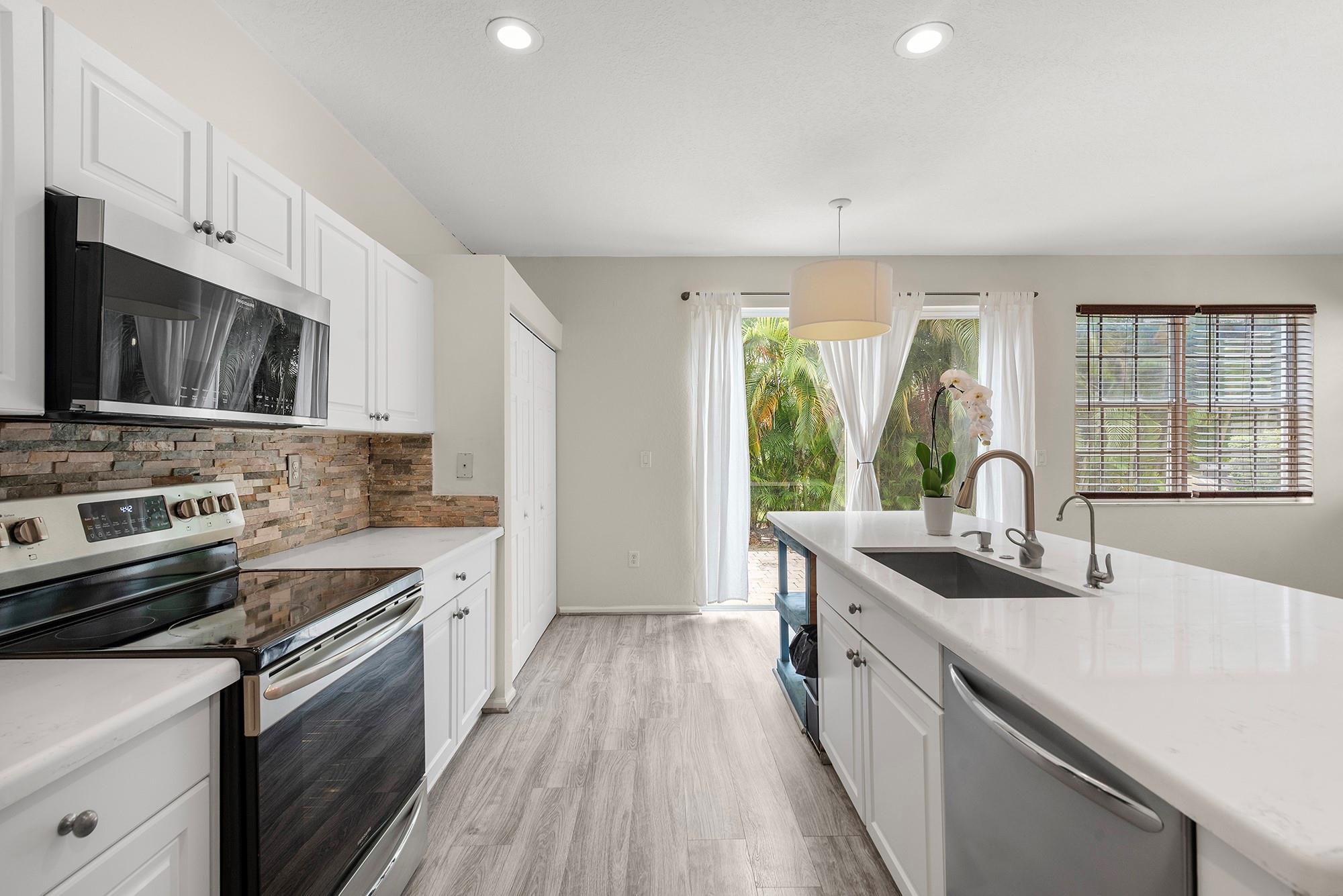 A TRUE HOME! | 5 BEDROOMS AND 2.5 BATHROOMS | THE RECENTLY REMODELED CONTEMPORARY FARMHOUSE STYLE INTERIOR FEELS BOTH WARM AND INVITING. KITCHEN FEATURES A EXTRA LARGE ISLAND, HUGE PANTRY, AND TONS OF NATURAL LIGHT. CLEAN AND SPACIOUS INTERIOR. TILE FLOORS IN GARAGE. LARGE WALK-IN CLOSET AND DUAL SINKS IN PRIMARY. BONUS FEATURE: BUILT-IN WORK STATION ON 2ND LEVEL! *ALL APPLIANCES INCLUDED WITH SALE.* NEIGHBORHOOD FEATURES: GATED COMMUNITY ENTRANCE, SWIMMING POOL, PLAYGROUND, FITNESS CENTER W/ SAUNA, WALKING TRAILS, BASKETBALL COURT, SOCCER FIELD, AND CLUBHOUSE. CONVENIENTLY LOCATED WITHIN WALKING DISTANCE TO THE ELEMENTARY SCHOOL, PUBLIX SUPERMARKET, BANK, SALON, AND MANY OTHER SHOPS.