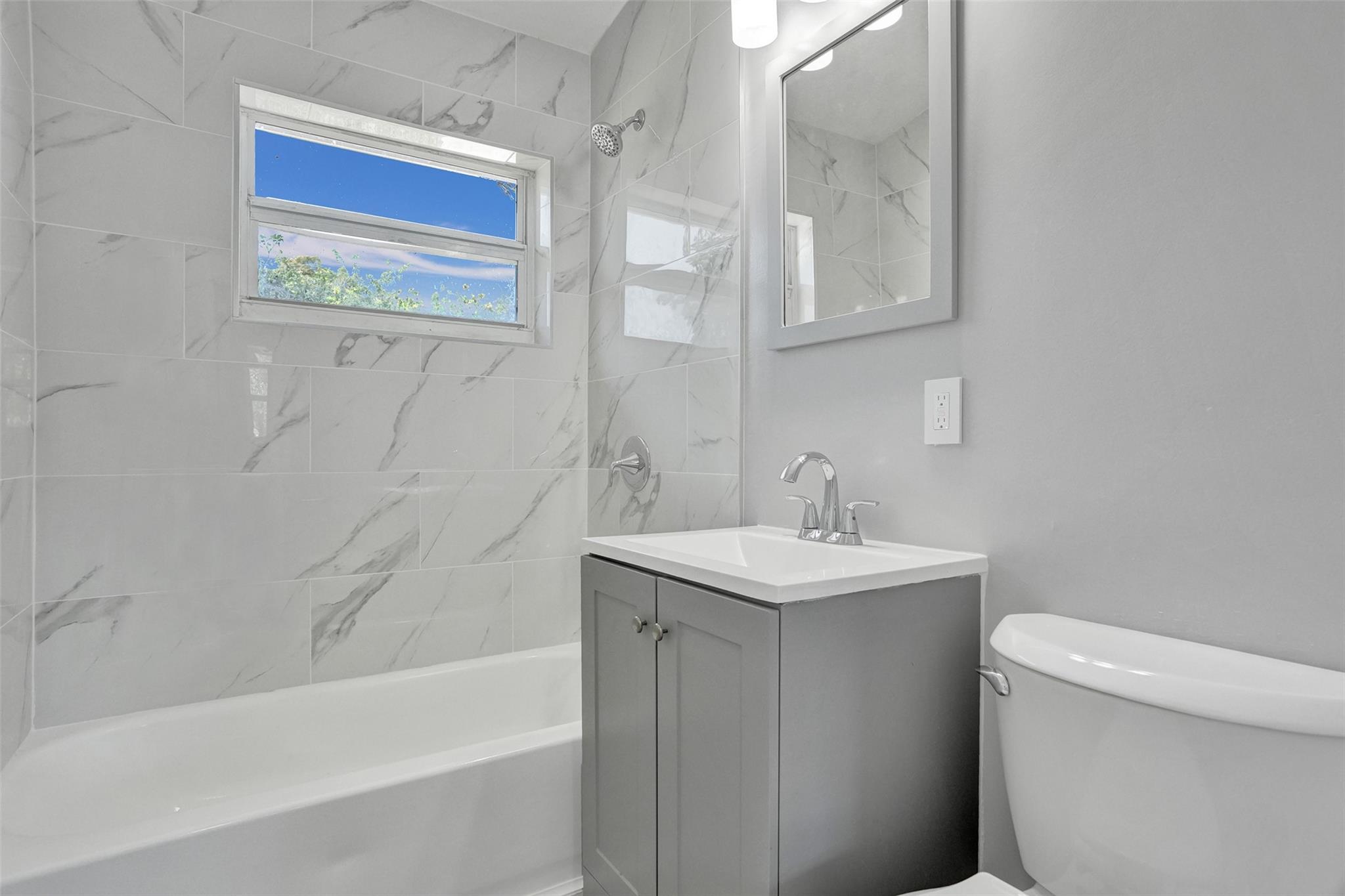 Price Improvement! Completely Remodeled w/ Modern Upgrades. Beautifully renovated home featuring bright & open layout w/ large combined kitchen, dining & living area—perfect for entertaining or relaxing w/ family. Brand new roof (March 2025) with transferable warranty for peace of mind. Impact windows & solid doors for added security and energy efficiency. Stunning new kitchen complete with quartz countertops, under-cabinet lighting, garbage disposal, brand-new SS appliances, custom cabinetry & stylish tile finishes. Luxury Vinyl Plank flooring throughout home for a modern & durable touch & new ceiling fans w/ remotes. Spacious backyard is a tropical retreat w/ mature mango tree, ideal for outdoor gatherings. Additional upgrades include new hot water heater & outdoor tiles. Move in ready!