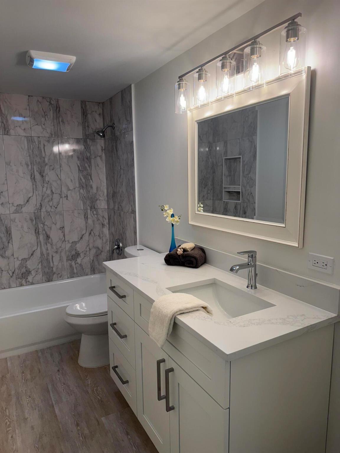 Seller motivated!Step into style and convenience with this fully renovated move-in-ready home. New hurricane impact sliding glass doors and front door, ensuring both safety and peace of mind. Inside, you'll find two new stunning en-suite bathrooms adorned with elegant, imported Spanish tile and seamless glass shower enclosure. The entire home has been freshly painted inside and out and boasts an all-new kitchen with imported handmade Italian tile, new cabinets, quartz countertops, and appliances, A/C & Water heater making it truly feel like new construction. Enjoy your morning coffee or evening unwind in your private courtyard and take advantage of two assigned parking spaces along with ample guest parking