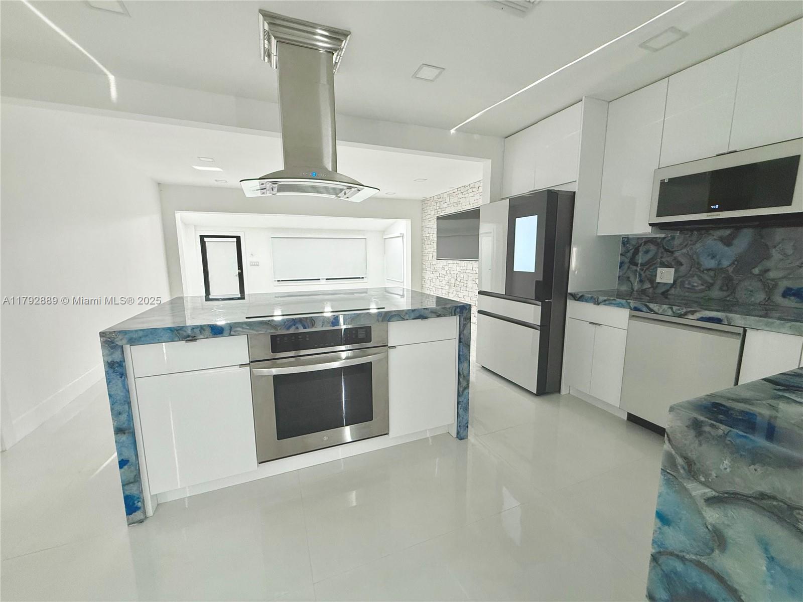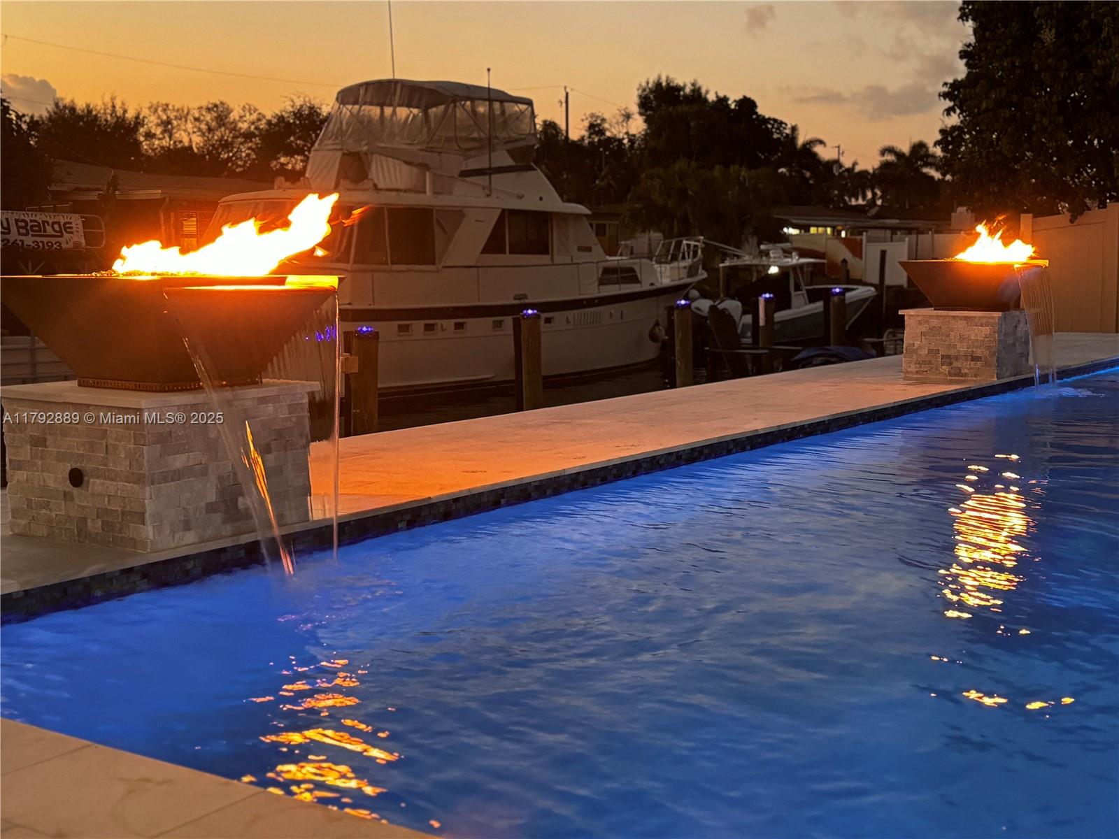 NO FIXED BRIDGES in charming FLAMINGO PARK. This home features 70Ft. of waterfront. All Impact windows and doors, tile roof, big backyard with a big pool. The kitchen is adorned with exquisite semi-precious natural stone countertops, including a rare illuminated blue agate centerpiece, creating a luxurious and sophisticated atmosphere.EQUIPPED WITH DOUBLE WASHERS-perfect for those who value their time and prefer a more streamlined laundry experience. The dock includes water and power for your boat.This is a 3/2, split floor plan design, Electric & plumbing updated. The property is situated on a quiet cul-de-sac,ensuring limited traffic flow and a safer,more private environment for residents.Close to 95 & 595airport10 minaway. DowntownFort Lauderdale, Beaches,Las Olas are ashort drive away.