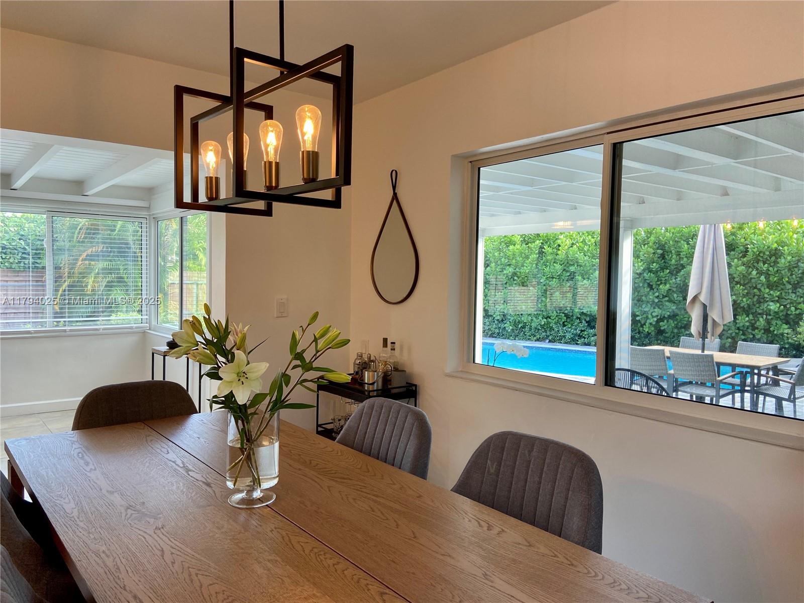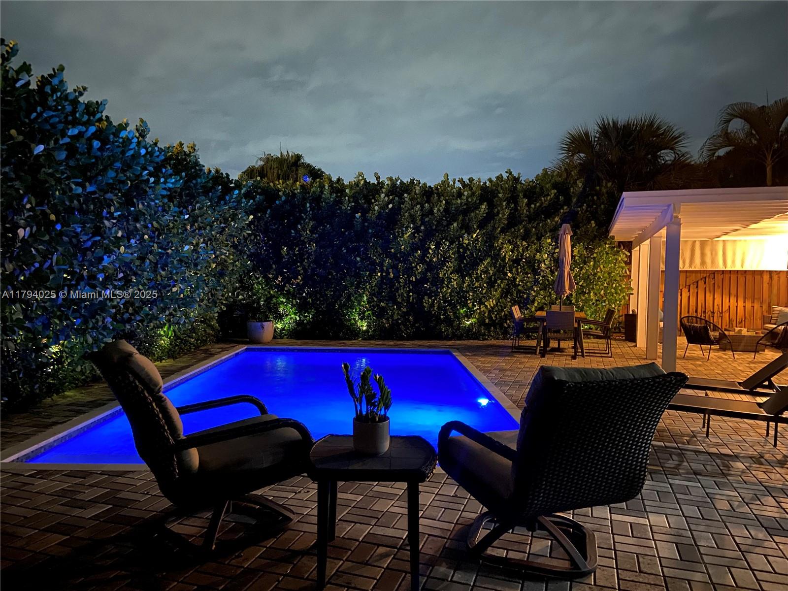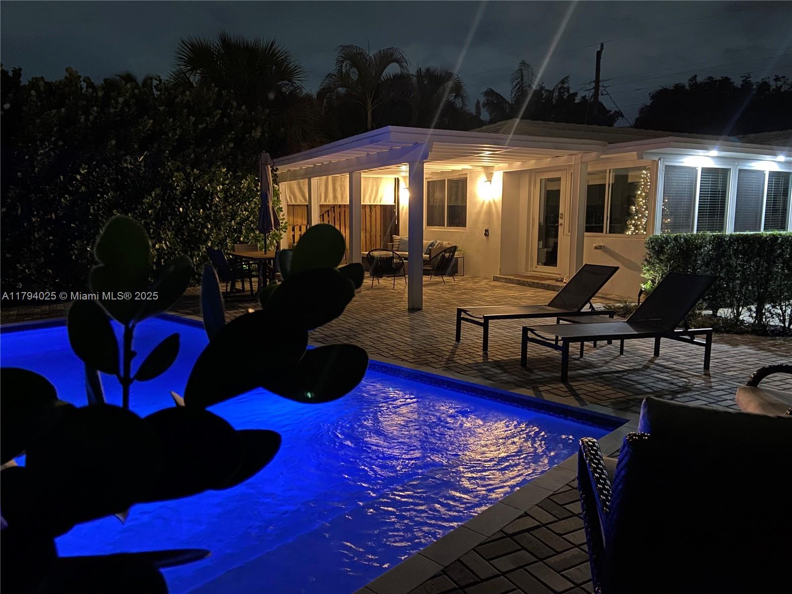 PRICE REDUCTION, LAST AVAILABLE SHOWINGS FROM TUESDAY 11/11 - FRIDAY 11/14 ONLY. NEW ROOF INSTALLED IN 2024 & IMPACT WINDOWS/DOORS THROUGHOUT - Bright and modern 2-bedroom, 2-bathroom home located Middle River Terrace, great opportunity for investment which can be sold fully furnished. Mid-century character / modern updates / turnkey property ideal for a primary residence, second home, or high-performing vacation rental. Fully enclosed fenced property with massive privacy hedges, heated pool & spacious paved deck.