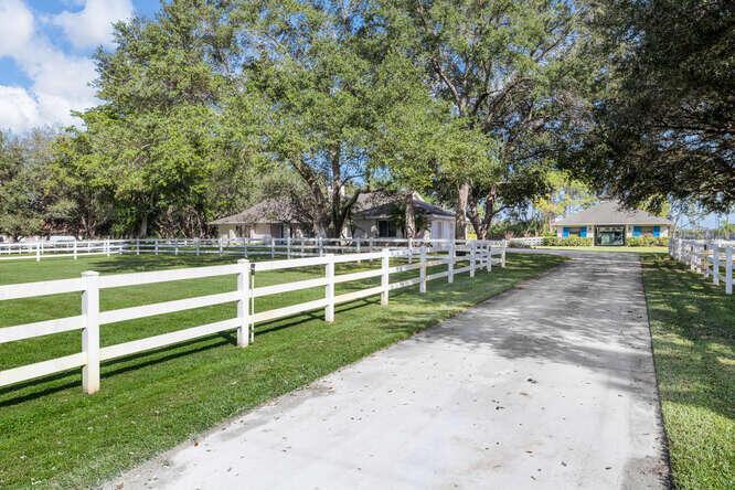 Live Oaks grace this beautiful Saddle Trail equestrian paradise, lending shade and tranquility to this 2+ ac farm located in one of theequestrian world's most sought after neighborhoods. Just a short 10 minute walk/trot hack to the show grounds, the property features a main barn with 412'x12' matted stalls, 2 with walk-outs and all with Nelson automatic waterers; fly system, fans in the 12+' center aisle and stalls; hot & cold water onboth sides of the aisle along with the 2 wash stalls. 12'x24' riders' lounge with full bath; 12'x12' tack room; 12'x12' laundry/utility room; 12'x10' garage;12'x10' hay room all with central AC. There is an additional barn on the property with 2 12'x14' stalls for overflow. You will love riding on the excellent footing
