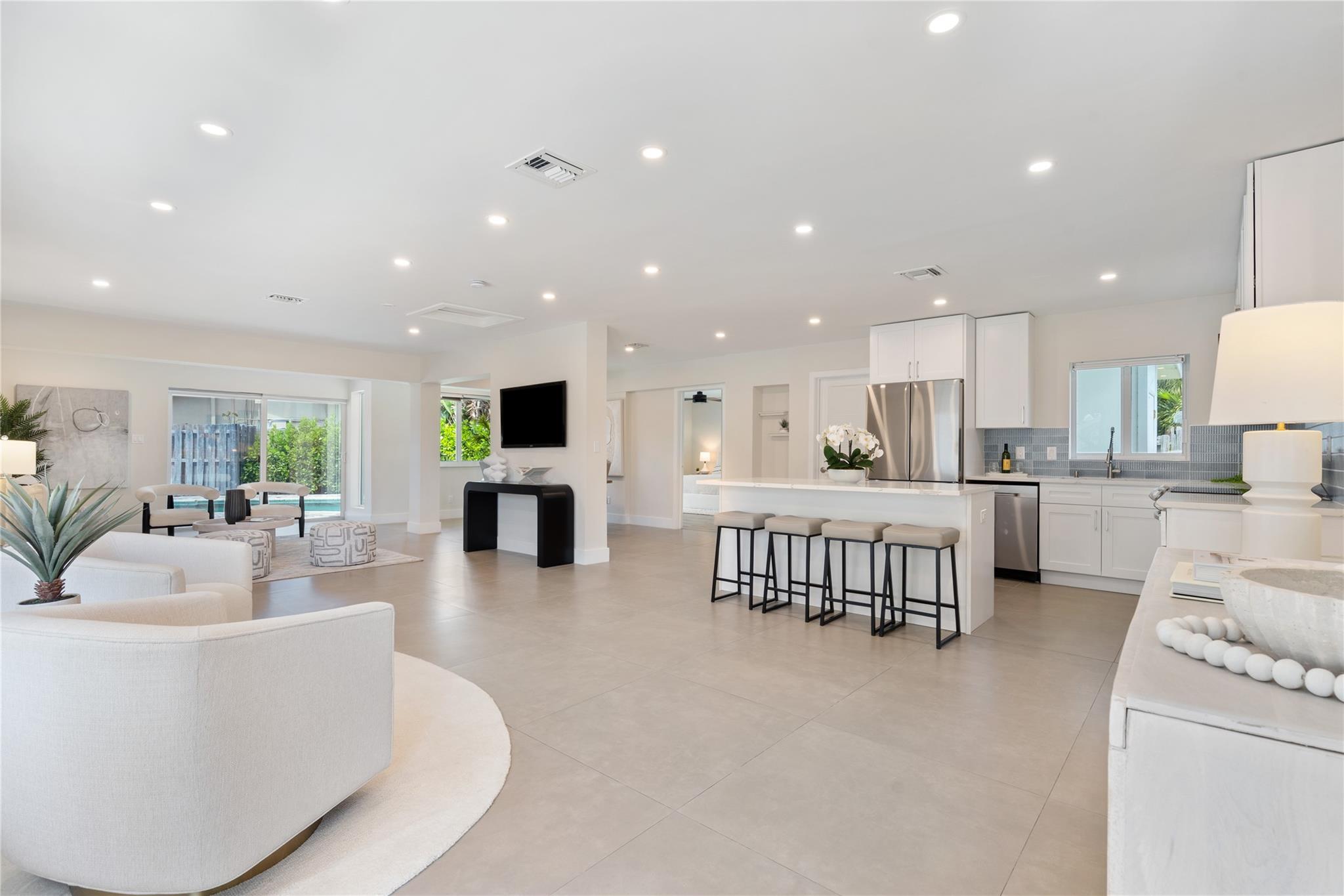 Move-in ready 4BR/3BA home in charming Cypress Lake! Fully renovated with an open floor plan, oversized porcelain tile, and impact windows. Modern kitchen with quartz counters, Samsung appliances, and beautiful backsplash. Primary and second bedrooms feature ensuites; primary suite includes large walk-in closet. Bathrooms with floating vanities for a sleek feel. Oversized lot with large backyard, pool, and two mature avocado trees—perfect for entertaining! Just 10 minutes to beaches, shops, and restaurants.
