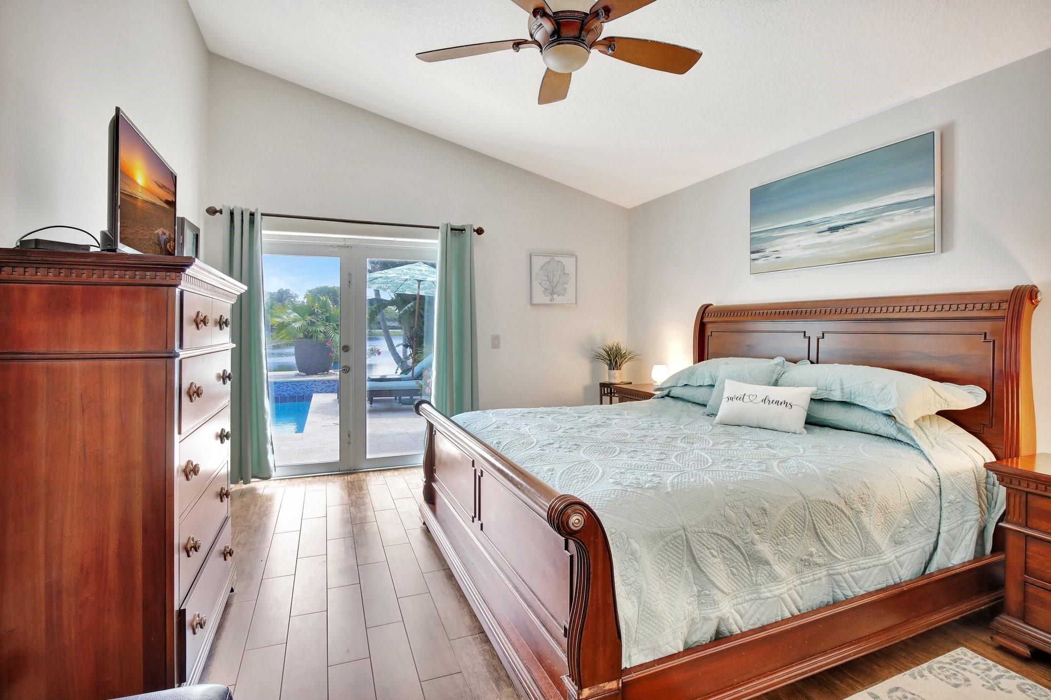 Step into timeless elegance & modern comfort in this 4BR/3BA/2 car garage, pool & lakefront home in desirable Embassy Lakes. Nestled in a serene neighborhood, this residence blends sophistication & warmth. The inviting entry opens to soaring vaulted ceilings, flooding open living spaces with natural light. The master suite is thoughtfully located on the main floor with serene views of the backyard oasis. Upstairs: 3 bedrooms & a loft. 4th bedroom opens to living room (easily closed). Open kitchen with granite, SS appliances, wood cabinets. Backyard is an entertainer’s dream with travertine patio, heated pool/spa, ½ bath, & serene lakeview. Impact windows. Roof 2007, AC 2023, WH 2019, Pool Heater 2022. Amazing schools. This is a home, not just a house.