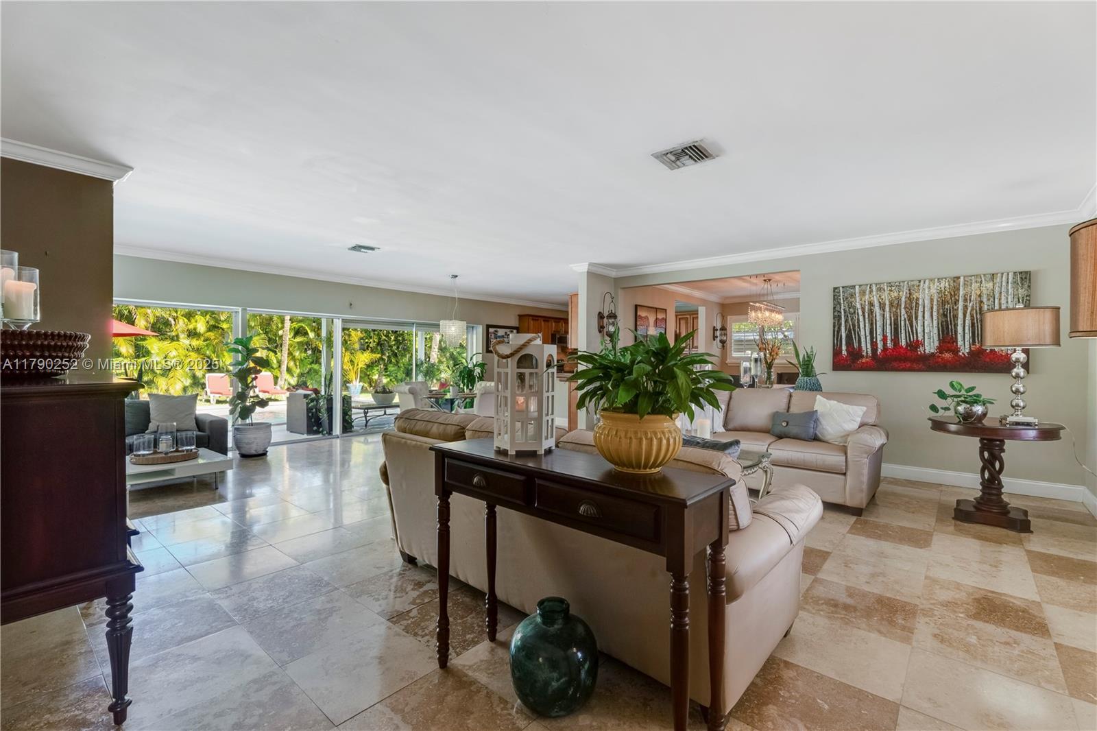 Adorable and Rarely Available South Pinecrest Gem! Lovingly maintained, light, bright, and located steps away from Palmetto Elementary & Middle Schools. A spacious, open-concept living, dining, and family room welcomes you to this light-filled 3-bedroom, 2-bathroom home, featuring oversized pocket sliding doors that seamlessly blend the outside with the indoors. The eat-in kitchen opens to a family room overlooking the beautiful resort-style pool, and a fantastic, lushly landscaped backyard perfect for indoor/outdoor living, entertaining, and enjoyment. The garage has been converted to a 4th bedroom/office area, but can be easily converted back. Move right into this special Pinecrest home and start enjoying this sought-after neighborhood and South Florida living at its best!