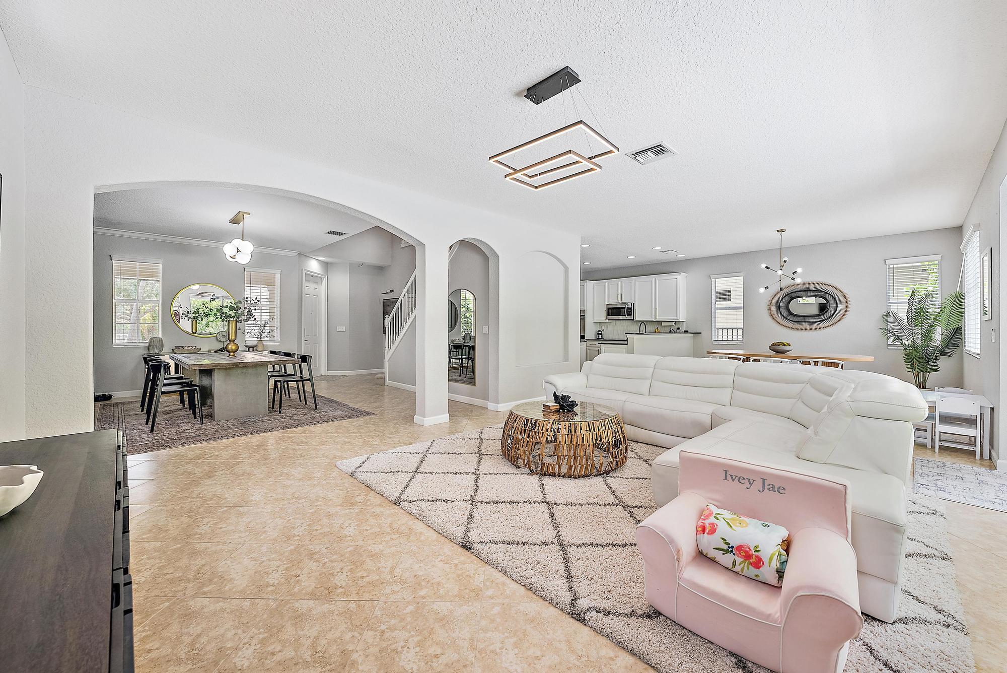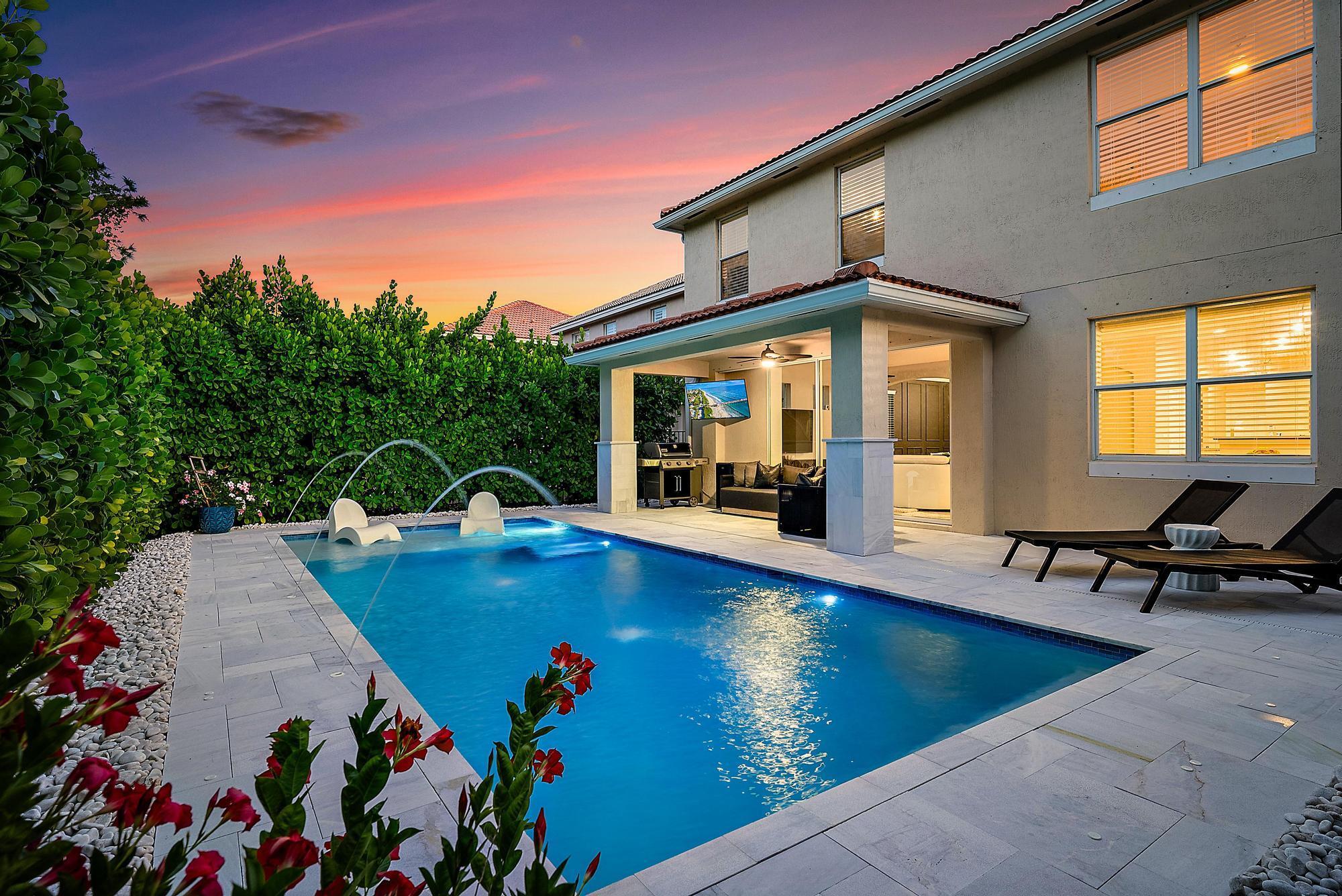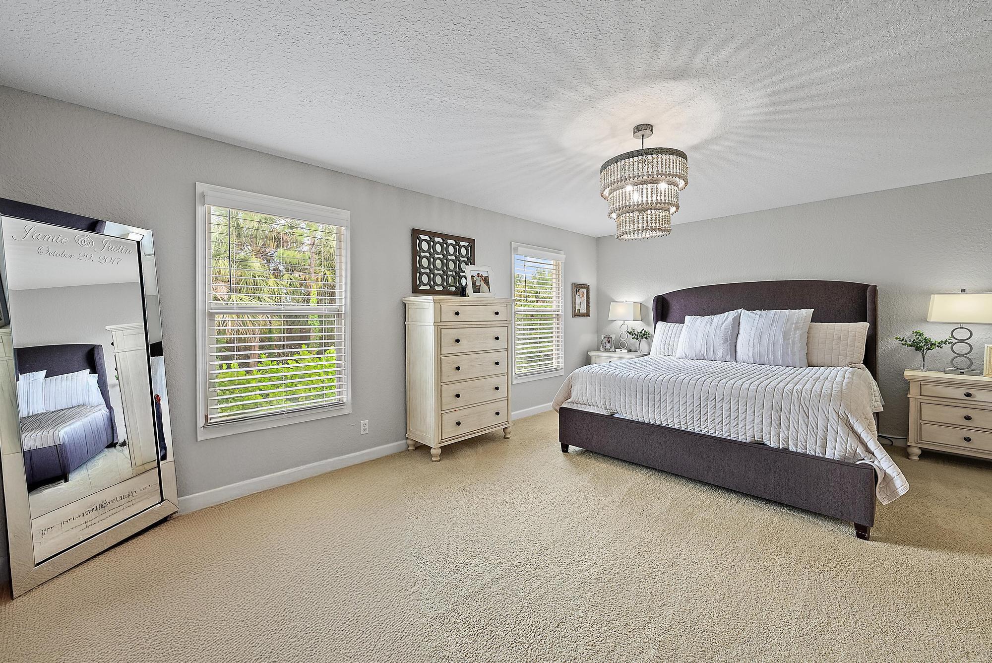 Rarely available and highly coveted Laguna model in the Oaks of Hobe Sound. This pool home features a spacious, open floor plan. Oversized kitchen is sure to impress, featuring 42'' wood cabinets, stainless appliances, granite counters & walk-in pantry with tons of storage. The kitchen opens to the dining room and family room. A half bath and. laundry room are also located on the first floor. Gorgeous pool installed in 2022, boasting tumbled marble decking and a heater/chiller. ALL BEDROOMS UPSTAIRS. The second floor features a spacious loft/game room. The primary suite is a peaceful sanctuary with an ensuite bath featuring a double vanity, walk-in shower, soaking tub, and generous his-and-hers closets.