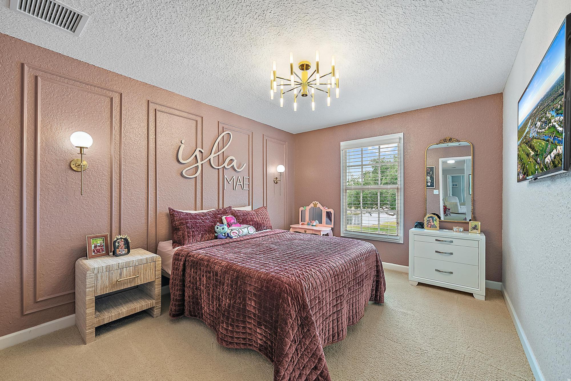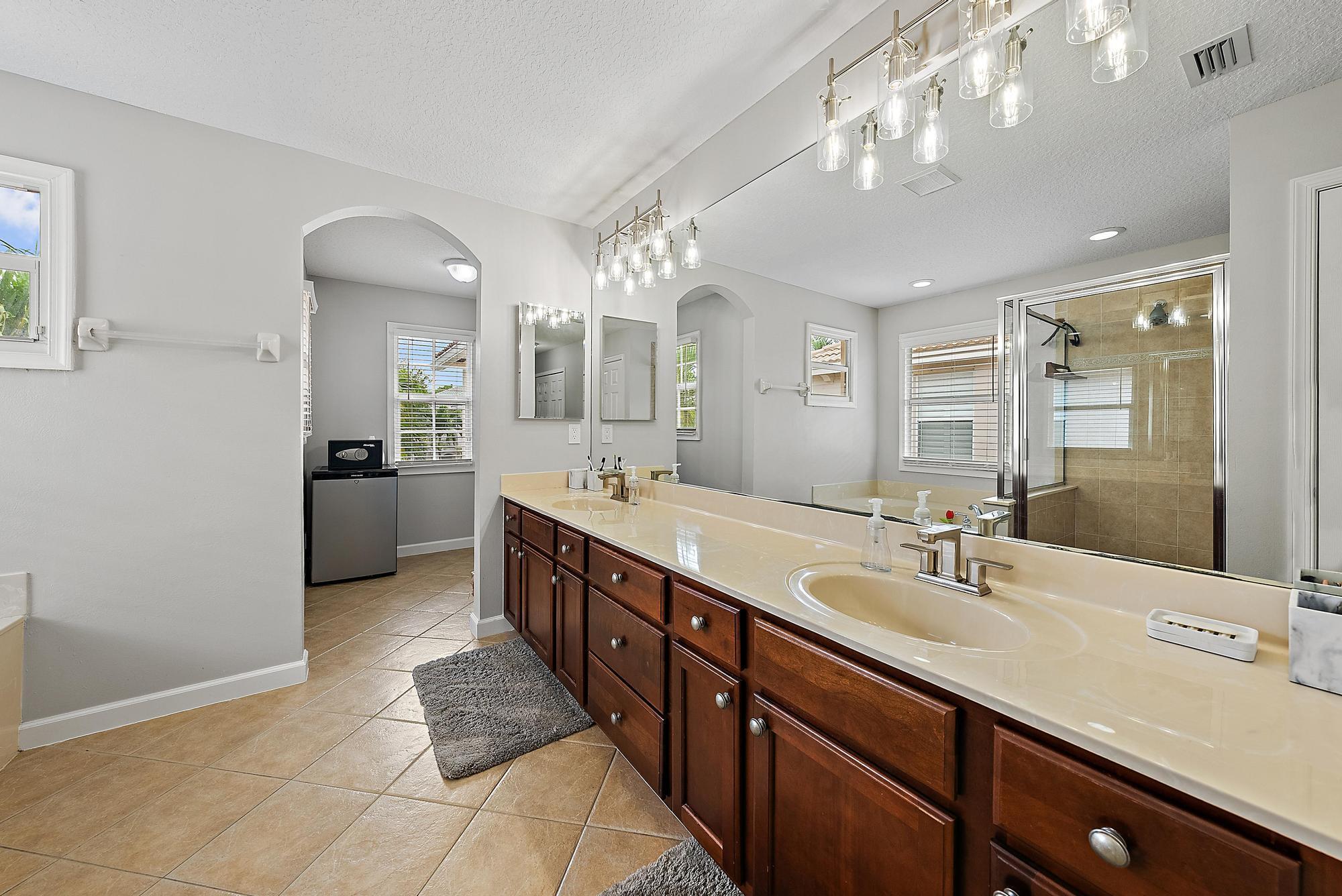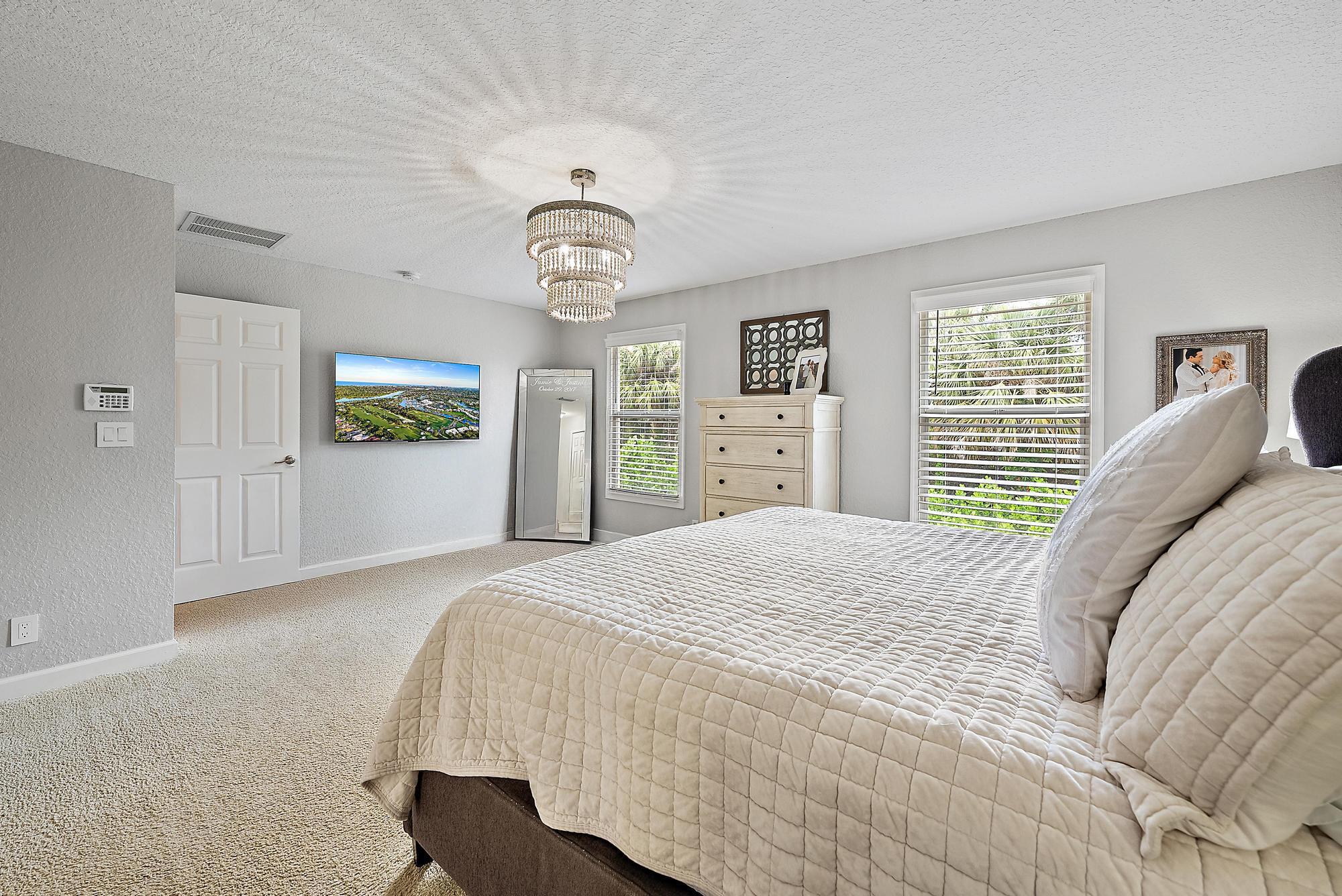 Rarely available and highly coveted Laguna model in the Oaks of Hobe Sound. This pool home features a spacious, open floor plan. Oversized kitchen is sure to impress, featuring 42'' wood cabinets, stainless appliances, granite counters & walk-in pantry with tons of storage. The kitchen opens to the dining room and family room. A half bath and. laundry room are also located on the first floor. Gorgeous pool installed in 2022, boasting tumbled marble decking and a heater/chiller. ALL BEDROOMS UPSTAIRS. The second floor features a spacious loft/game room. The primary suite is a peaceful sanctuary with an ensuite bath featuring a double vanity, walk-in shower, soaking tub, and generous his-and-hers closets.