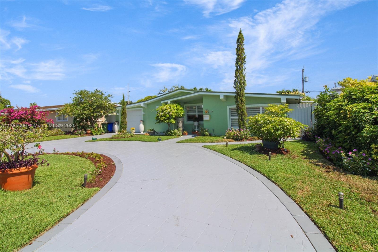 Situated in a tranquil neighborhood,this delightful residence features three bedrooms, two bathrooms,& a refreshing saltwater pool surrounded by lush greenery.Inside,you'll find an interior that has been tastefully updated,where contemporary comforts harmonize with classic elegance.The living spaces are filled with natural light,offering a cozy yet spacious ambiance, ideal for both unwinding & hosting guests.At the center of the home is the well-equipped kitchen,boasting modern appliances and abundant counter space for your cooking endeavors.Outside,the beautifully landscaped garden envelops the home,providing a stunning oasis perfect for outdoor relaxation & dining under the open sky.New Roof, new AC, bathrooms & Pool.Hurricane panels. Circular driveway & 1 car garage.Open House 5/10