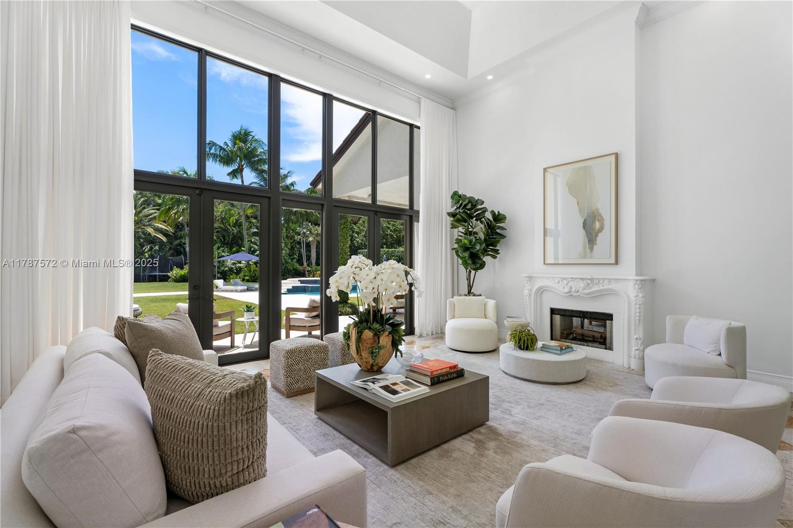 Located on a palm-lined road in sought-after N. Pinecrest, this one-story gated residence offers a designed layout with soaring ceilings & well distributed living spaces. The dine-in chef’s kitchen opens seamlessly to a spacious family room and comes with a glass wine cellar The elegant primary suite includes a large sitting area. Upgrades: impact windows/doors, whole-house generator, New Roof (2023), new garage doors, modern lighting, custom closets, exterior cameras, updated A/Cs, and new appliances. The expansive, landscaped backyard is a true South Florida retreat—featuring a resort-style pool, summer kitchen, koi pond, shaded dining areas, and mature trees for ultimate privacy. Located in the top-rated Pinecrest Elementary School district with quick access to shops, dining, and US-1.