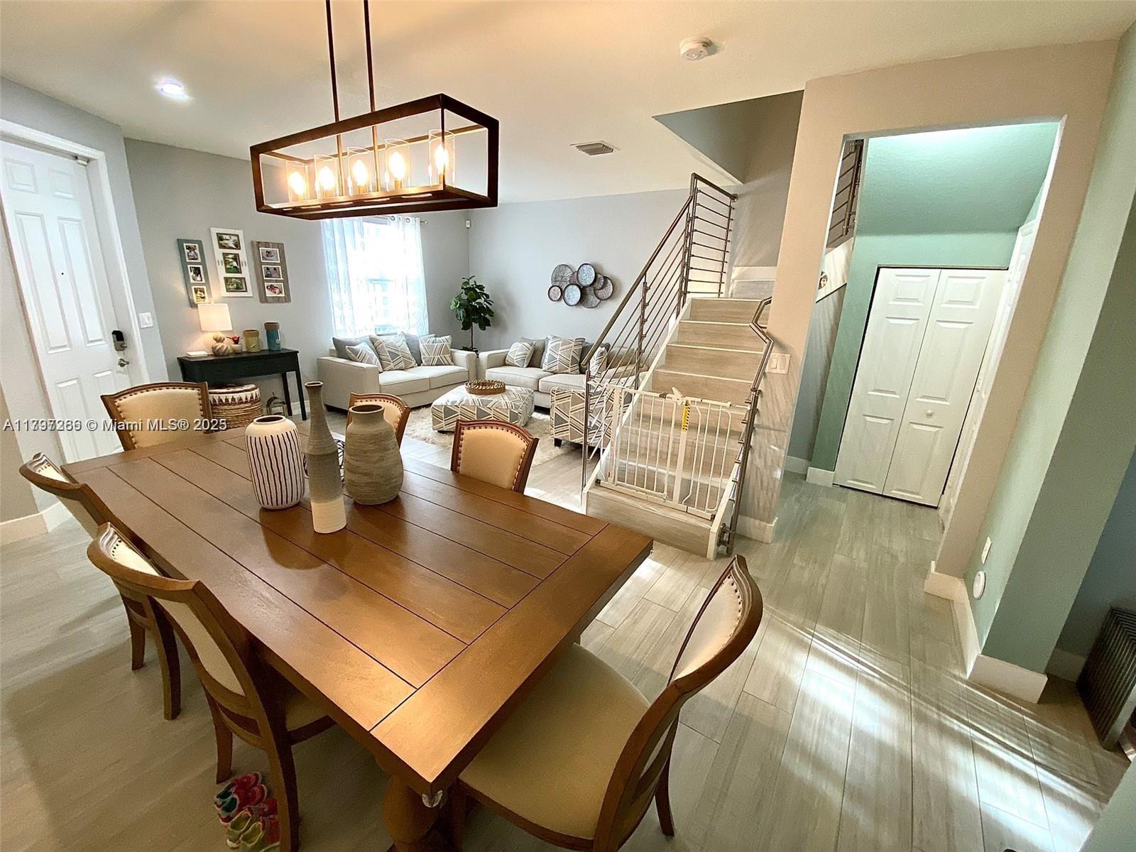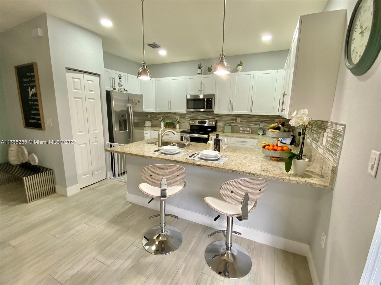 Beautiful Townhouse " Smart Home". Stunning home is located in the exclusive luxury community of Aquabella. Private gated community 24/7 security, resort style with pools, outdoor grilling station fitness centers, water park for kids, 2 clubhouses, plenty of parking spaces for visitors, close to major highways and new shopping centers with Publix supermarket, HomeGoods, Burlington, restaurants and much more. This two story home has 3 bedrooms, 2 full bathroom and 1/2 a bathroom, first floor porcelain/second floor laminated with 2 assigned parking in front.
