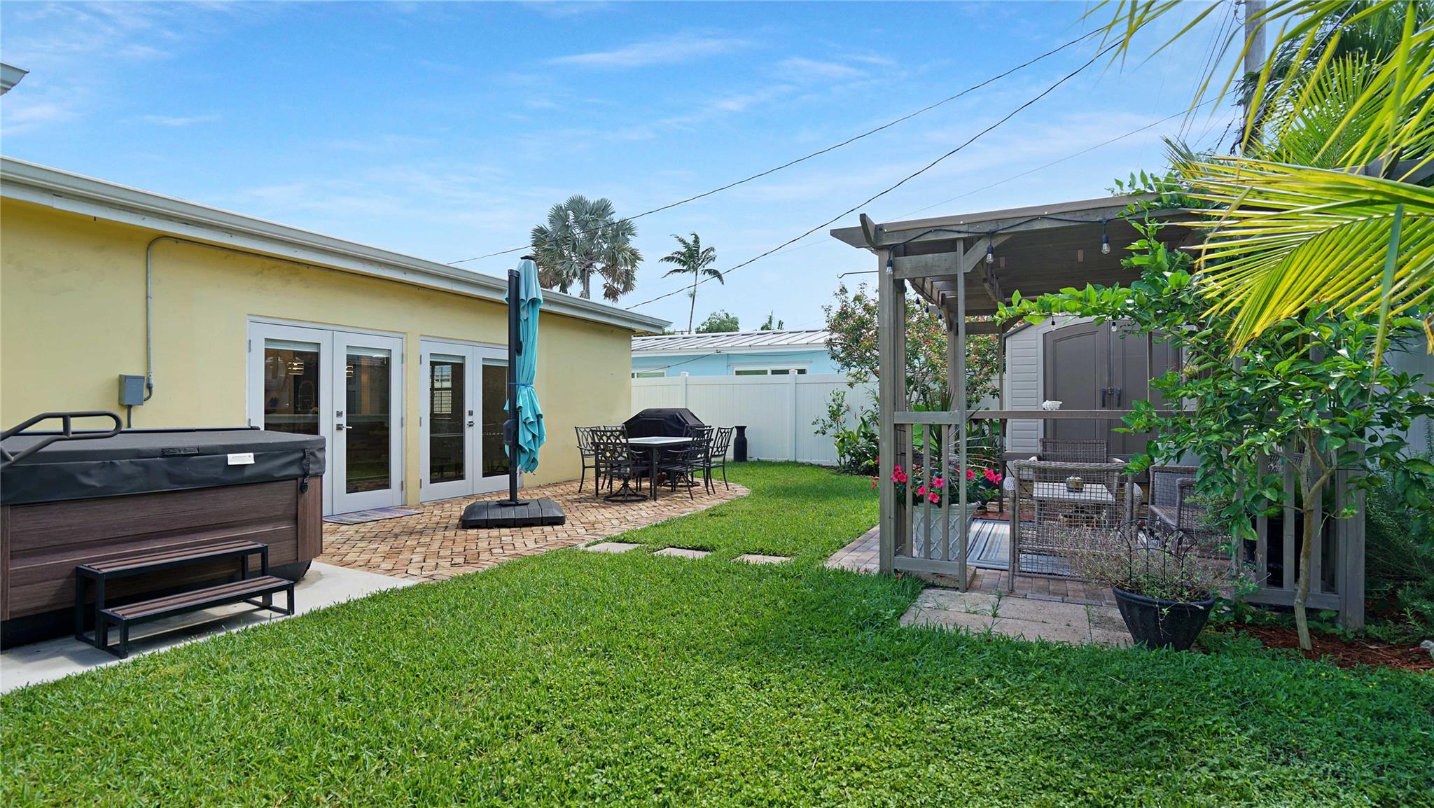 Renovated 2BR/2BA home in Oakland Park’s desirable Royal Palm Acres. This substantially remodeled residence features tile flooring, French doors, a spacious open kitchen with gas range, and updated baths. The lush backyard includes a patio, fruit trees, fenced perimeter, and room for a pool. Exterior features include impact glass, high-impact doors, shed, and extra building/shed for storage or workspace. No HOA, circular driveway, carport, and space for RV/boat parking. Quiet street close to major roads, parks, and shopping.