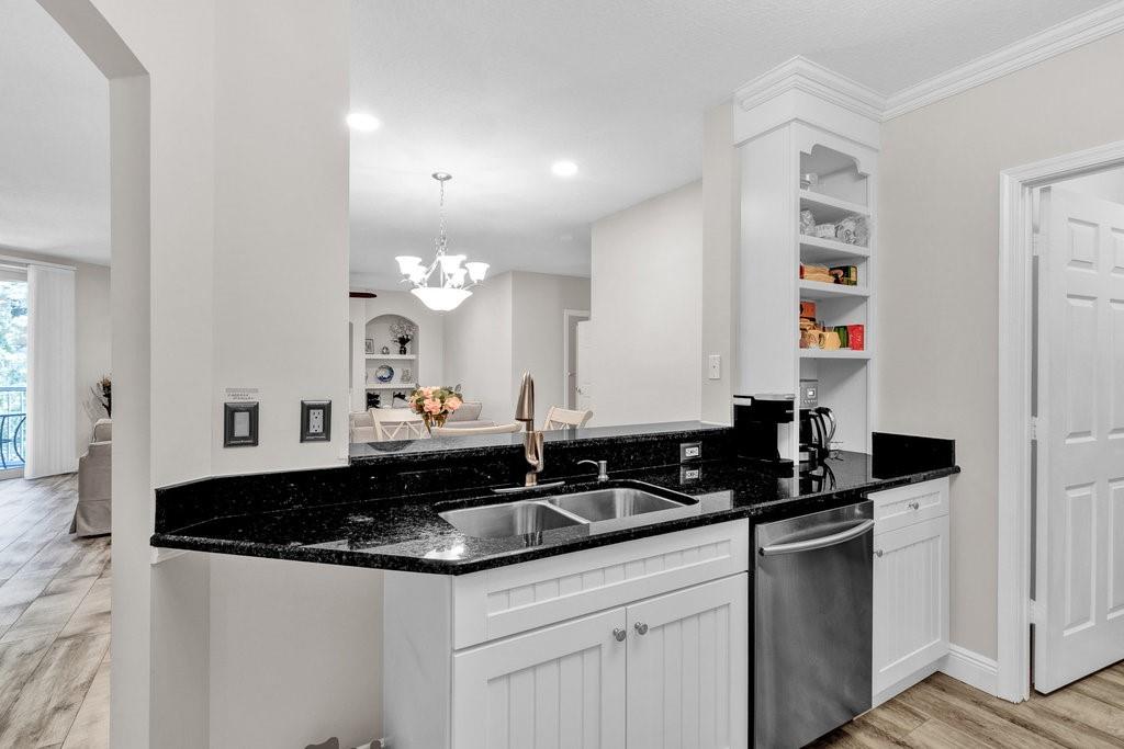 Discover resort-style living in this gated Fairways at Grand Harbor community, known for its Mediterranean-inspired architecture, premium amenities & overlooking the prestigious Grand Harbor golf course. This stunning 3-bedr, 2-bath home spans 1,848 sq ft & boasts a spacious living room/dining combo w/ built-in shelving, a galley-style kitchen perfect for entertaining. The main bedroom has golf course views plus a 2nd ensuite bedroom, ideal for guests & a 3rd bedroom great for office space. New AC, water heater & freshly painted thru-out. The unit includes impact windows, plantation shutters & W/D.