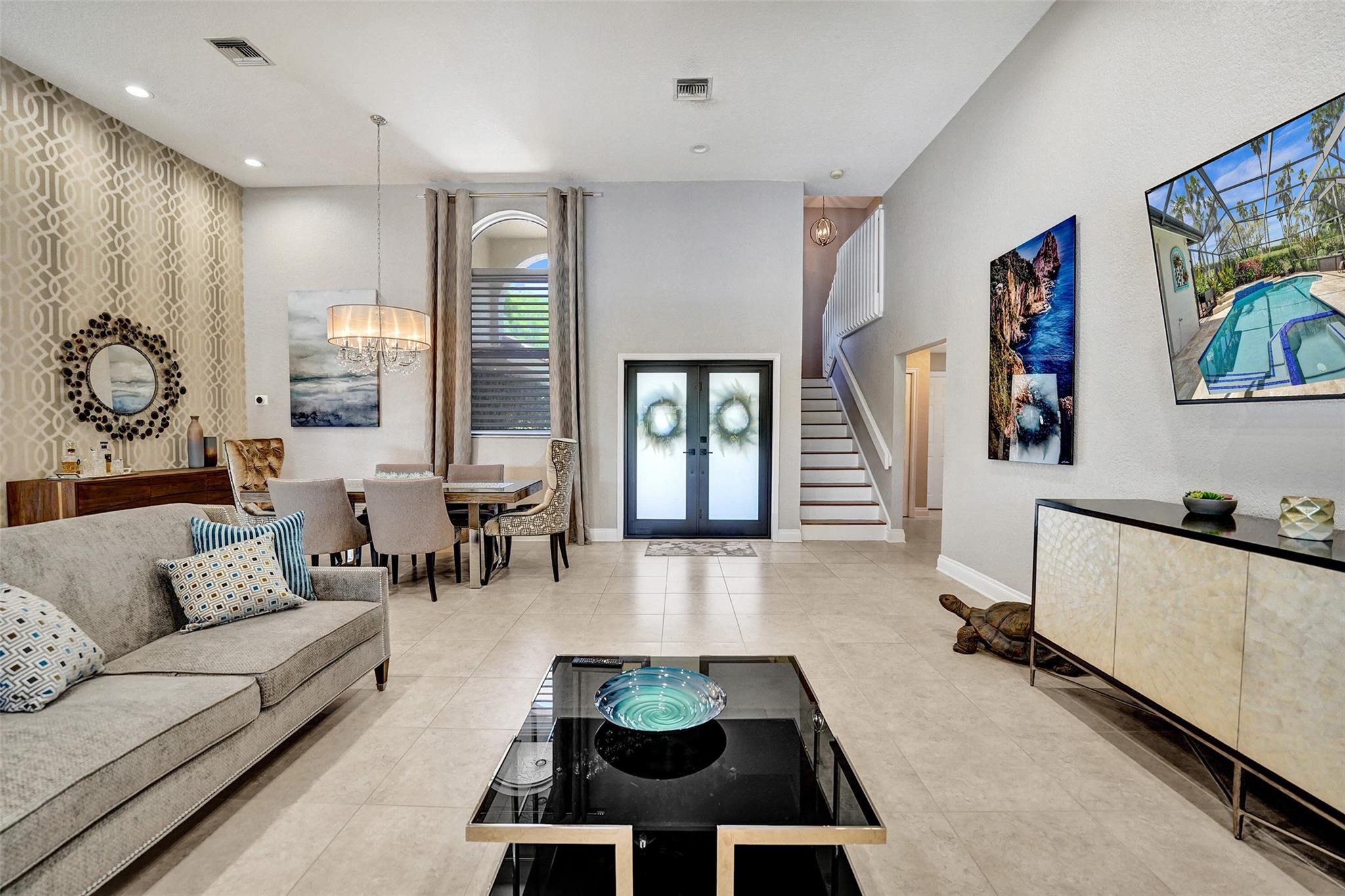 Experience luxury in this stunning 5-bed, 3.5-bath pool home in the coveted Oaks at Country Isles. This elegant residence features an open floor plan with soaring ceilings, impact glass, and a gourmet kitchen flowing seamlessly into a spacious family room—ideal for entertaining and everyday living. The oversized primary suite offers a spa-like bath and custom-built walk-in closets. Step outside to a tropical oasis with lush landscaping, a heated pool and spa, all backing to a tranquil 5-acre park. With high-end appliances, an 8-car driveway, and a large lot, this home blends comfort, style, and unbeatable location!