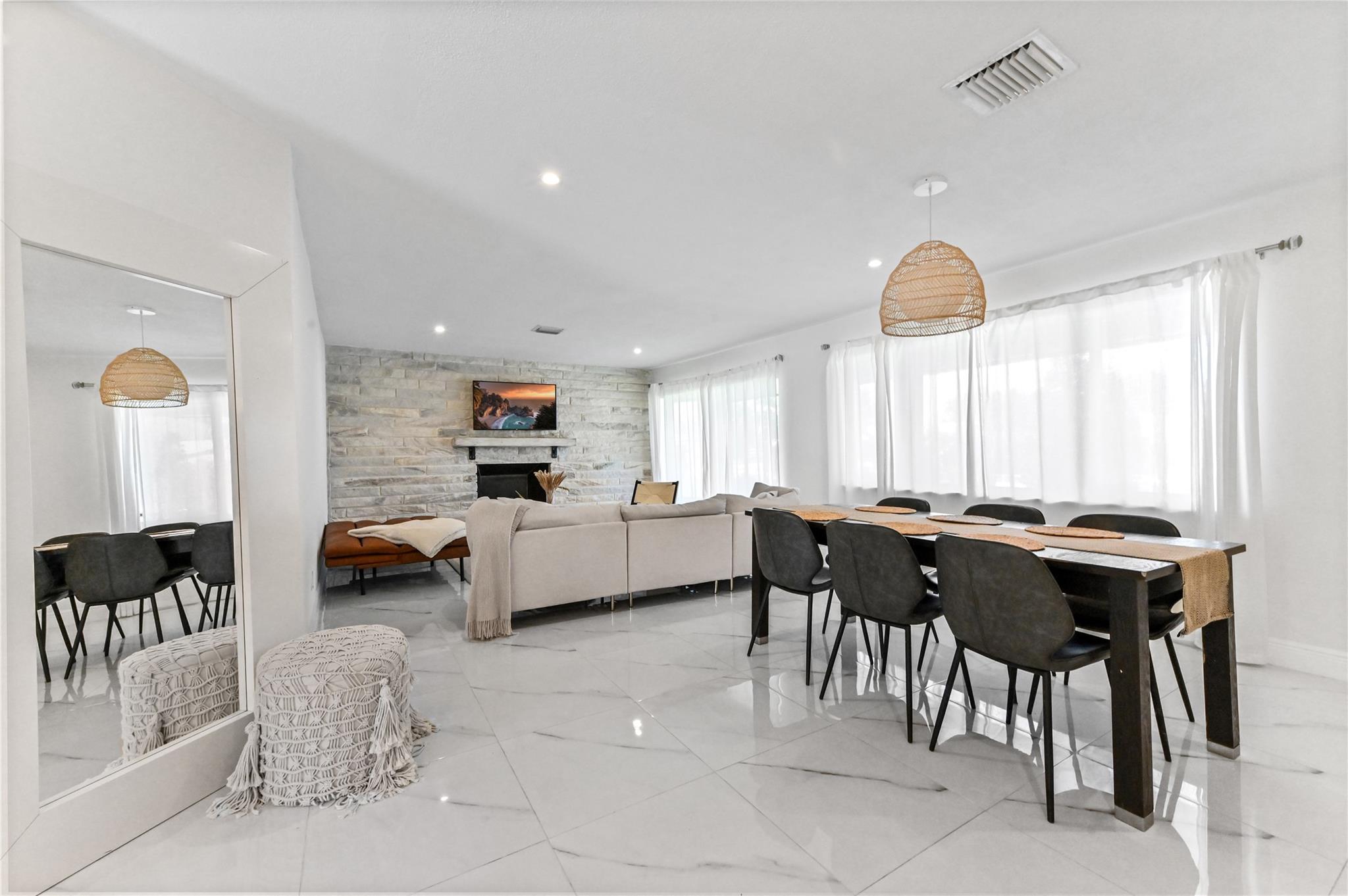 Modern Oasis in Imperial Point – Priced to Sell! Step into this fully renovated 4-bedroom, 2-bathroom home with a private office, offered completely furnished and truly move-in ready. Located in the coveted Imperial Point neighborhood, it’s ideal as a primary residence or a high-performing short-term rental. Enjoy peace of mind with a brand-new electrical panel, permitted kitchen and bathrooms, and a 3-year-old roof. Hurricane impact windows throughout ensure safety and energy efficiency. Inside, you’ll find tile flooring throughout, waterfall quartz countertops, and sleek, modern finishes. Outside, escape to your fenced tropical backyard with a LED-lit pool, tanning ledge, and lush landscaping that comes to life at night