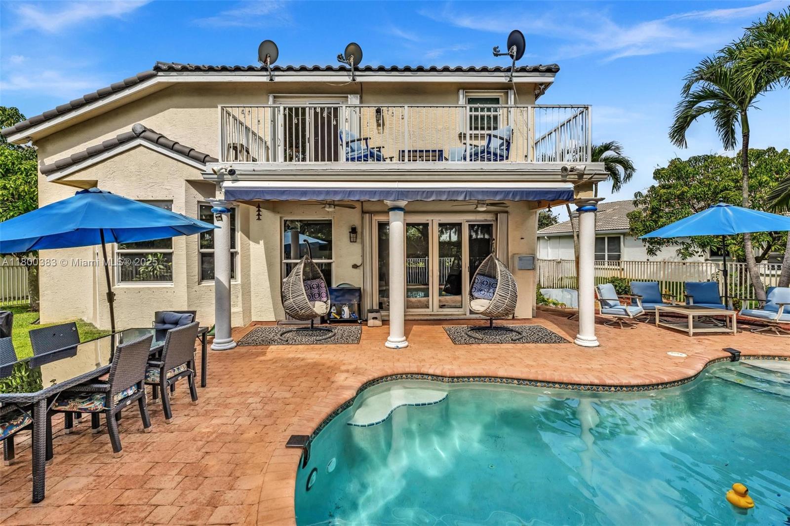 BACK ON THE MARKET with an IMPROVED PRICE! Nestled in the gated community of Silver Shores, this immaculate 4BR/4Bth spacious home is a gem. Vaulted 20ft high ceilings and large windows frame a spacious & open concept floor plan allowing light & plenty of space for family & friends to relax. First floor bedroom ideal as a guest/in-law suite with three additional bedrooms upstairs. The deluxe primary suite offers double sinks, closets & bathrooms, a seating area/office and a 2nd level private deck. Home also has new roof (2023), new AC's (2024 & 2018), and hurricane impact sliders/windows throughout. Outdoor space has a sprinkler system & includes your pool & spa-tub, w/ extra space suitable for children's play area, gardening & so much more. Don't miss this wonderful opportunity!