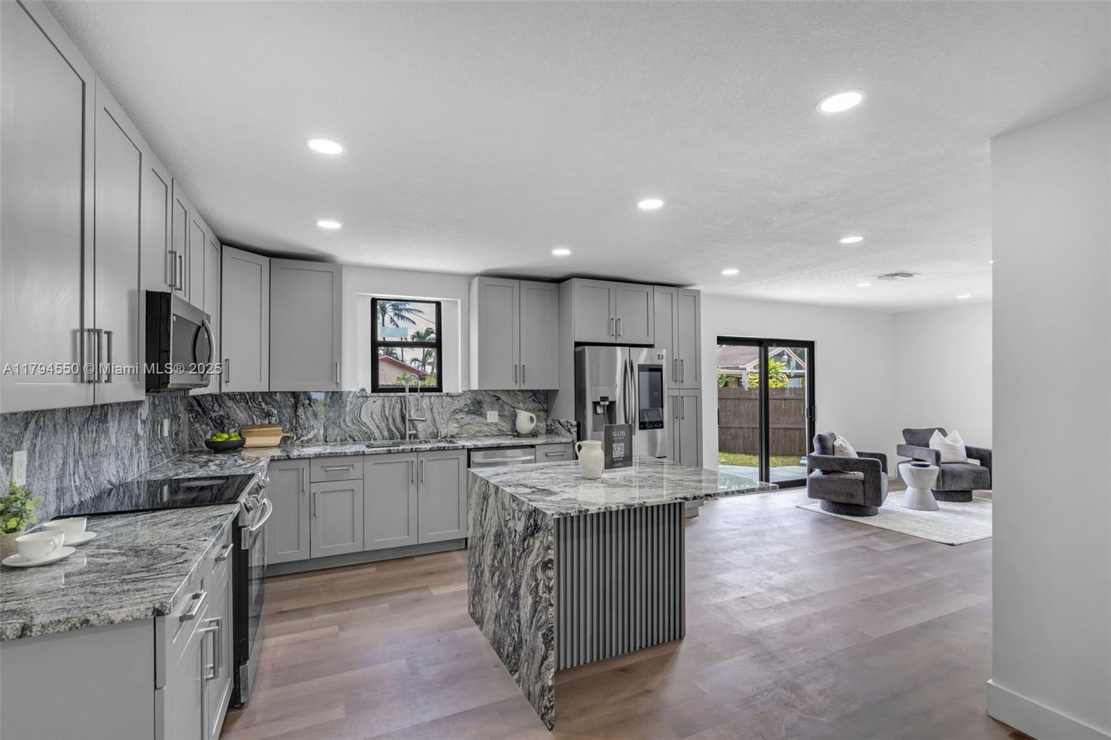 One of a kind Corner Oversize lot Single Family home offering 4 bedrooms 2 bathrooms, 2 car garage with a large pool, & enough space on the side of the home to park an RV & plenty of space in the drive way to park 8+ cars. Home is fully upgraded and ready to move in! New Roof (2025) modern floors, impact windows and doors, modern kitchen & bathrooms and much more! Open Concept layout offering a great flow from the living, dinning, to the kitchen & family room offering lots of natural light. Upgraded landscaping in the front & back lawn with a great pergola in the back, great for entertainment. Easy to show, Select Showing Time