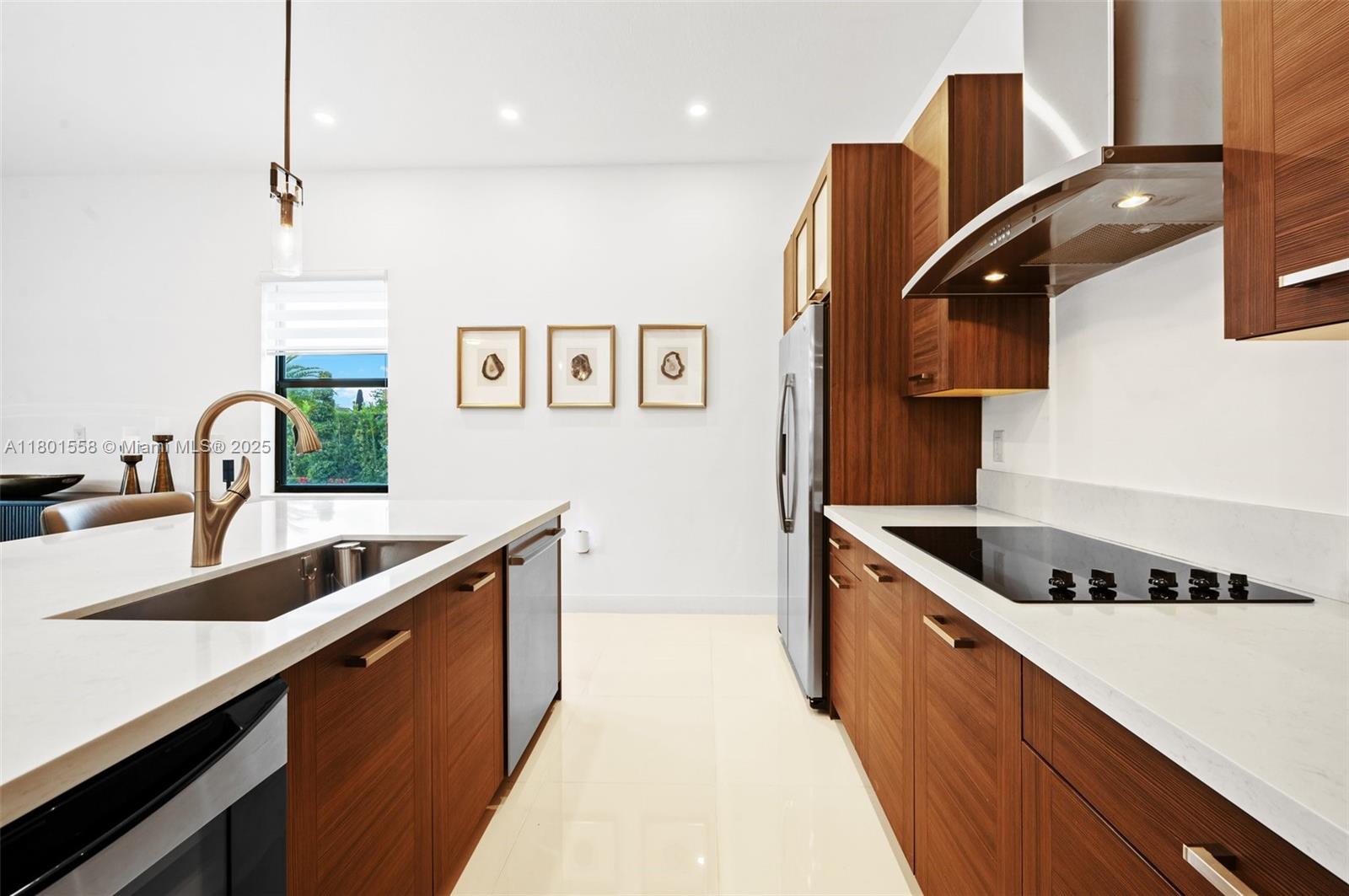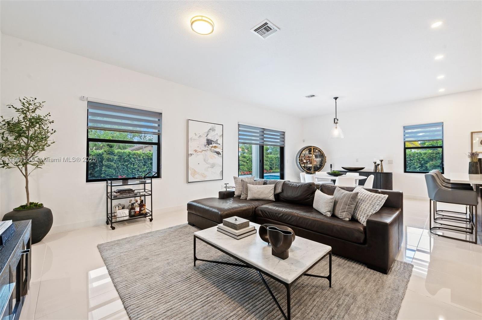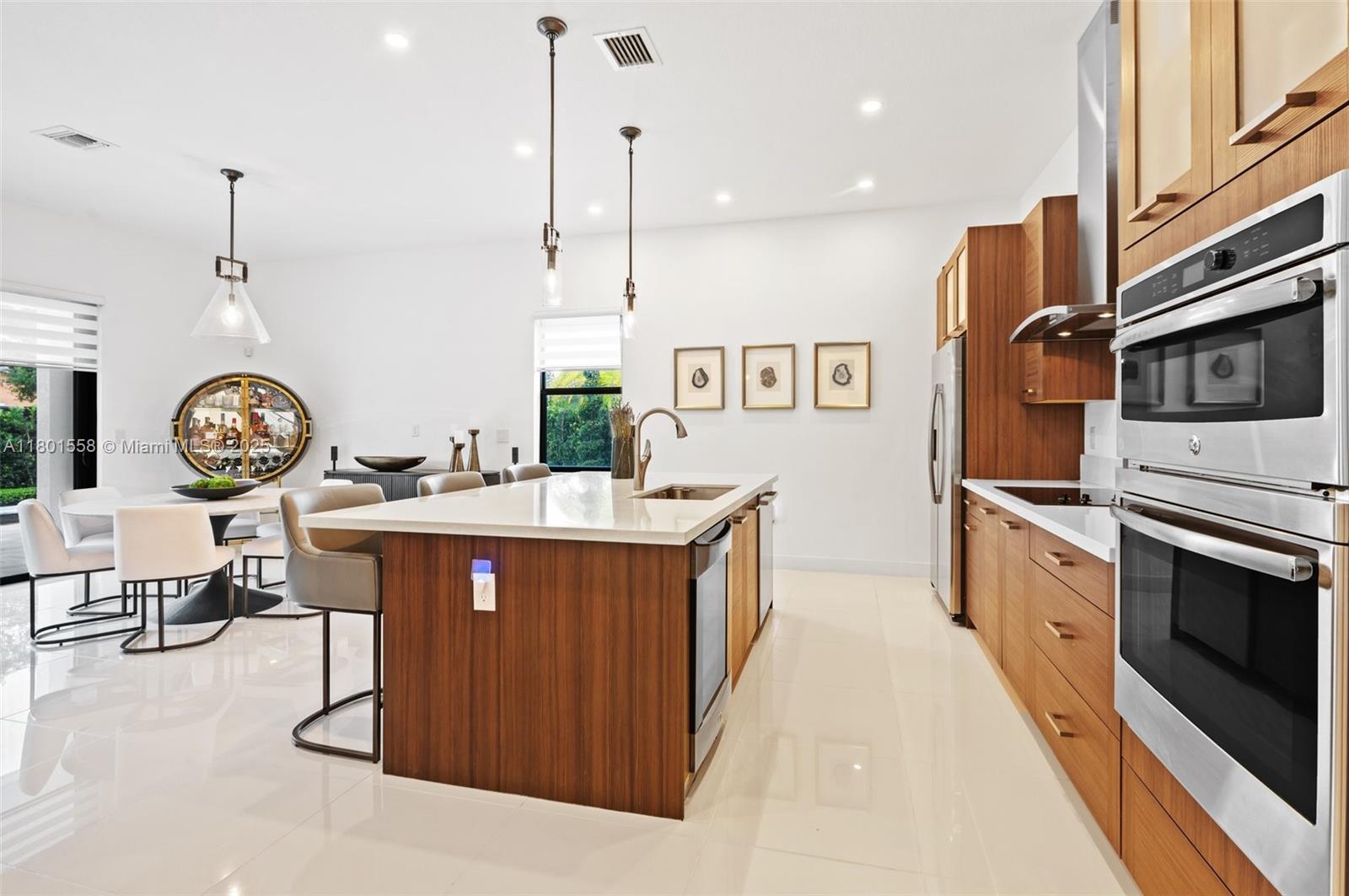 A designer gem in Miami Lakes. Experience refined living in this exquisite 4-bed, 3-bath Oasis model home, nestled in the prestigious guard-gated community of Satori: Set on a tranquil street, this residence impresses with soaring 20-ft ceilings, designer lighting, custom accent walls, and expansive impact windows. The chef’s outdoor kitchen under a sleek pergola overlooks a resort-style saltwater pool and spa. Interior upgrades include porcelain and luxury vinyl flooring, zebra blinds, and a ground-level suite. Meticulously landscaped and freshly painted, this home exudes sophistication. Enjoy world-class amenities: lakefront clubhouse, gym, spa, kids’ waterpark, and more all with serene views of a 67-acre lake.