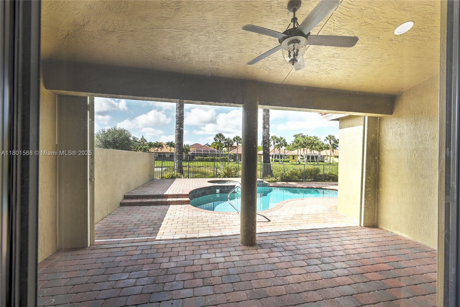 Stunning 2-story single-family home with 4 bedrooms plus a den and 4 full baths, offering 2,439 sq ft of living space. Built in 2005, this residence features vaulted ceilings and crown molding that create a bright, open feel throughout. The primary is located on the first floor and includes two walk-in closets and a spa-like bath with soaking tub. Plantation shutters add charm and privacy, while hurricane accordion shutters provide peace of mind. Enjoy lake views from your private backyard oasis with a covered patio and pool — perfect for relaxing or entertaining. The gourmet kitchen boasts black granite countertops, stainless steel appliances, and maple cabinetry. ADT security system ready. Located in a desirable community offering a clubhouse, pool, tennis courts, and picnic area.