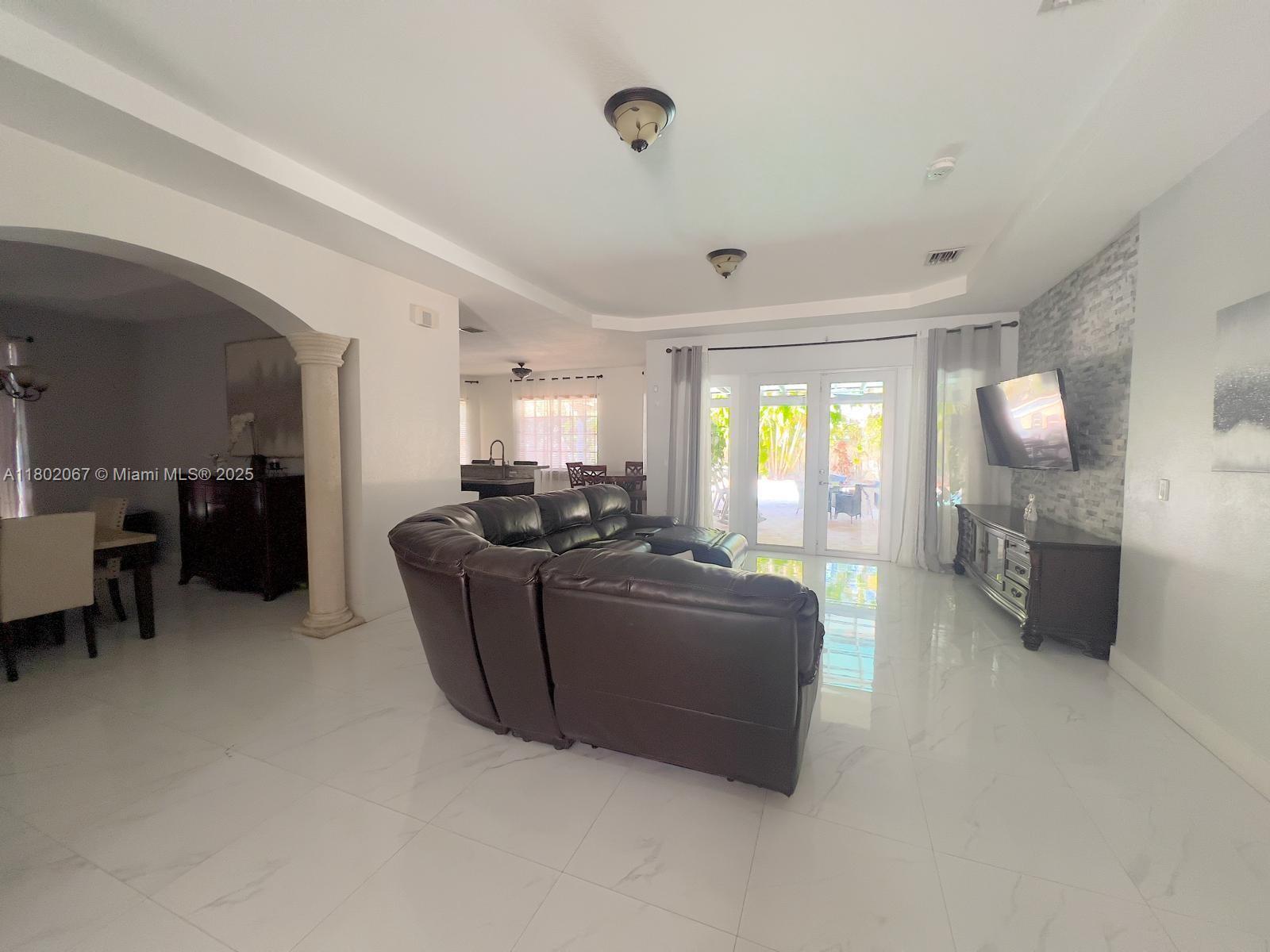 Welcome to this stunning 5-bed, 4.5-bath corner-lot home offering spacious, family-friendly living with no HOA. Enjoy an oversized lot with a large pool, jacuzzi, and fruit trees including mango and avocado. Features include high ceilings, an open-concept kitchen, and expansive living areas. Upstairs offers four bedrooms, including a spacious primary suite with dual walk-in closets and a private balcony with spiral staircase leading to the backyard. The first-floor bedroom is a private in-law suite with a separate entrance. Two-car garage, hardwood floors upstairs, and plenty of space for boat or RV. Close to Turnpike, US-1, top schools, shopping, and dining.