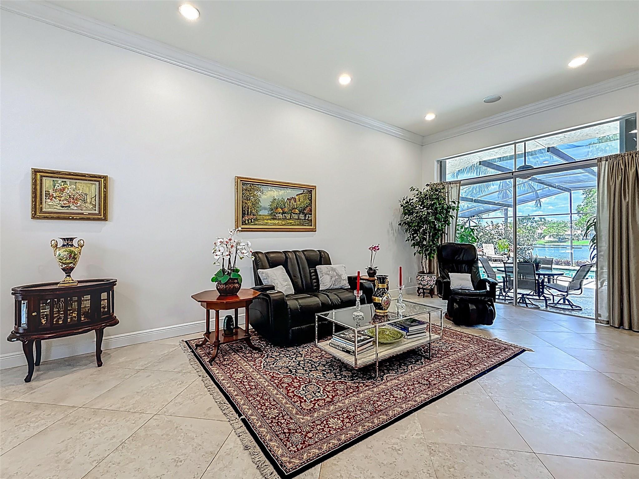 NEW PRICE BELOW APPRAISED VALUE! This one story 5BD/4BA lakefront pool home is what Florida living is all about. Located on a large cul-de-sac lot, this home features a dedicated office/den (optional 6th bedroom), a tri-split floor plan enhanced by crown molding, tile/wood flooring, & spacious living areas. Enjoy lake views from every bedroom! A secondary ensuite is ideal for guests or multi-generational living. Step outside to your lakefront screened-in pool & patio for relaxing or hosting gatherings year-round. More highlights include fresh interior paint, barrel tile roof, & circular paver driveway. The Lakes offers a 24-hr manned gated entrance, community pool, playground, & soccer field. Prime location near I-75, top-rated schools, parks, shopping, medical, & dining. See TODAY!