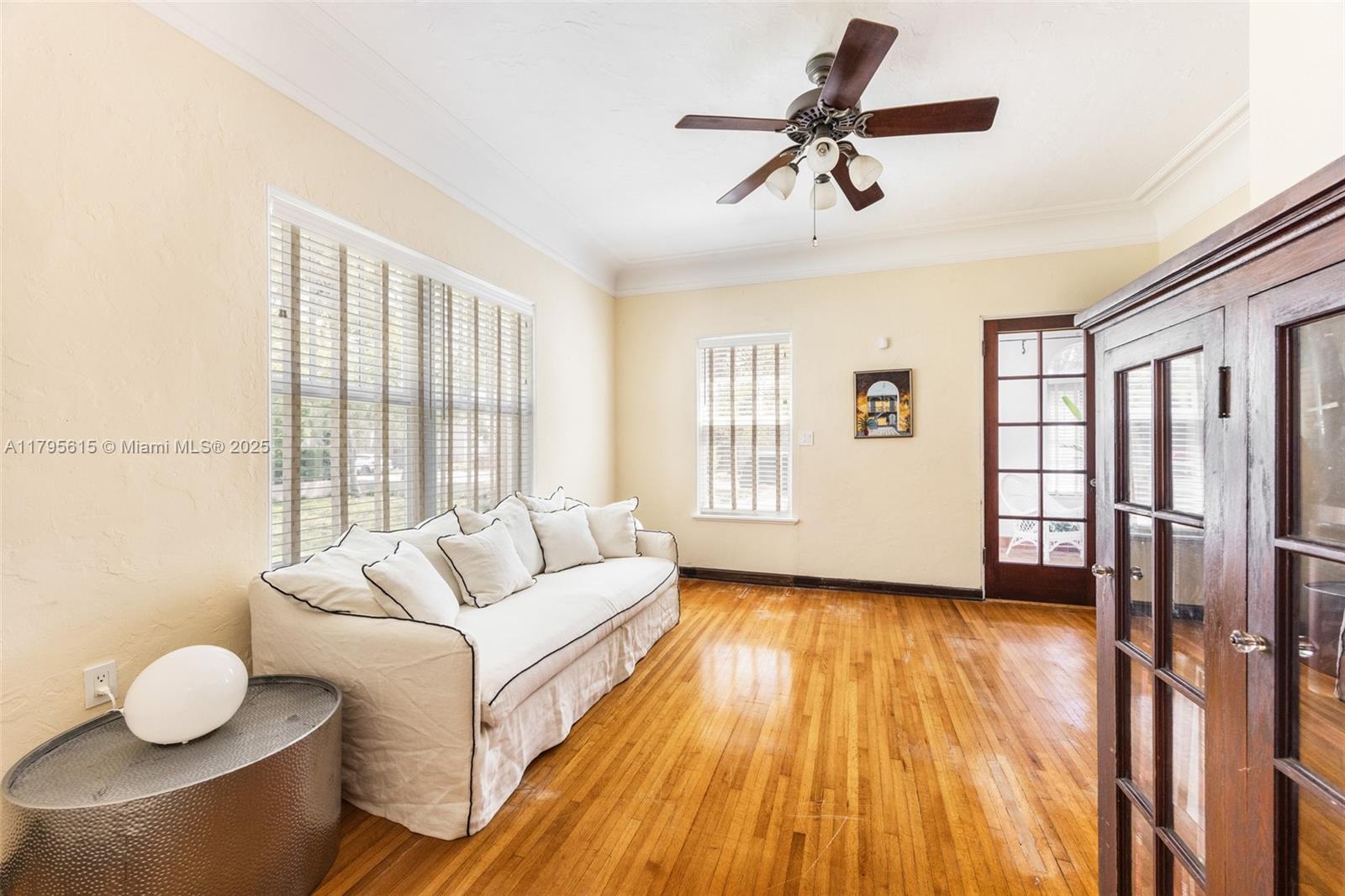 Welcome to Villa Amata- a 1932 Italian Renaissance Revival in historic Shenandoah. Set on a double corner lot, this architectural gem stands w/ elegance & presence. Originally built by a father for his daughter, Villa Amata has been thoughtfully restored, blending timeless character w/ modern updates. Step inside to soaring ceilings, hardwood floors & an original fireplace. Functional layout w/ formal living & dining rms, powder rm, family rm & bright sunroom. Chef’s kitchen w/ 36” gas range & custom cabinetry. Upstairs: 4 spacious bdrms & updated baths. Detached 2-car gar & studio apt. Custom impact windows; updated plumbing & electric. Enjoy a large tropical backyard w/ fruit trees & room for a pool. A rare opportunity to own a beautifully preserved piece of Miami’s architectural legacy.