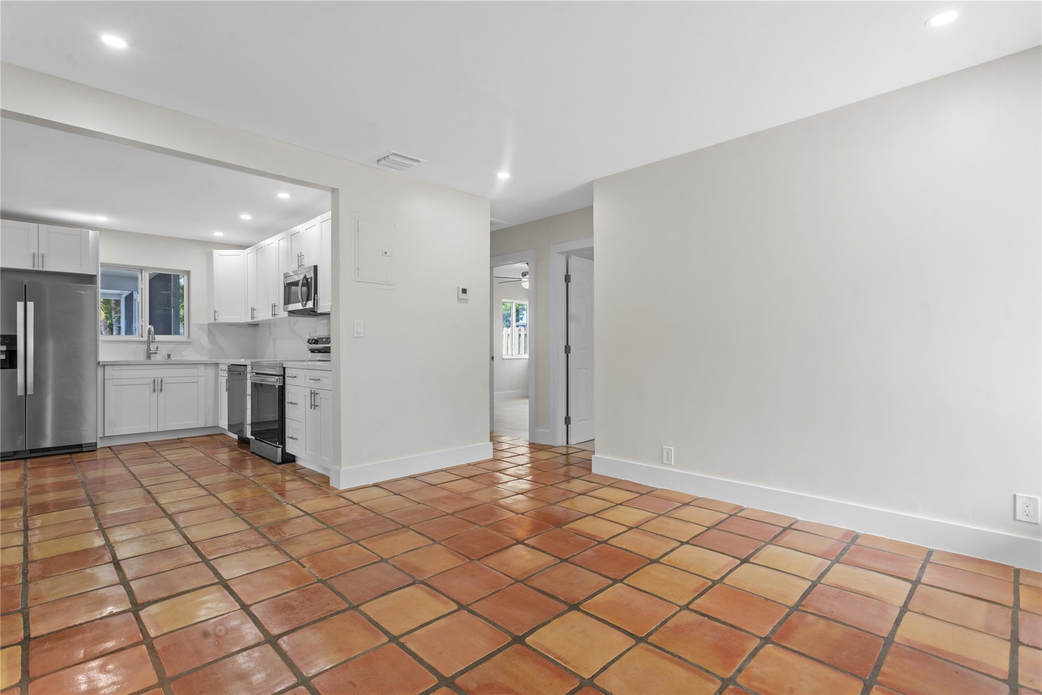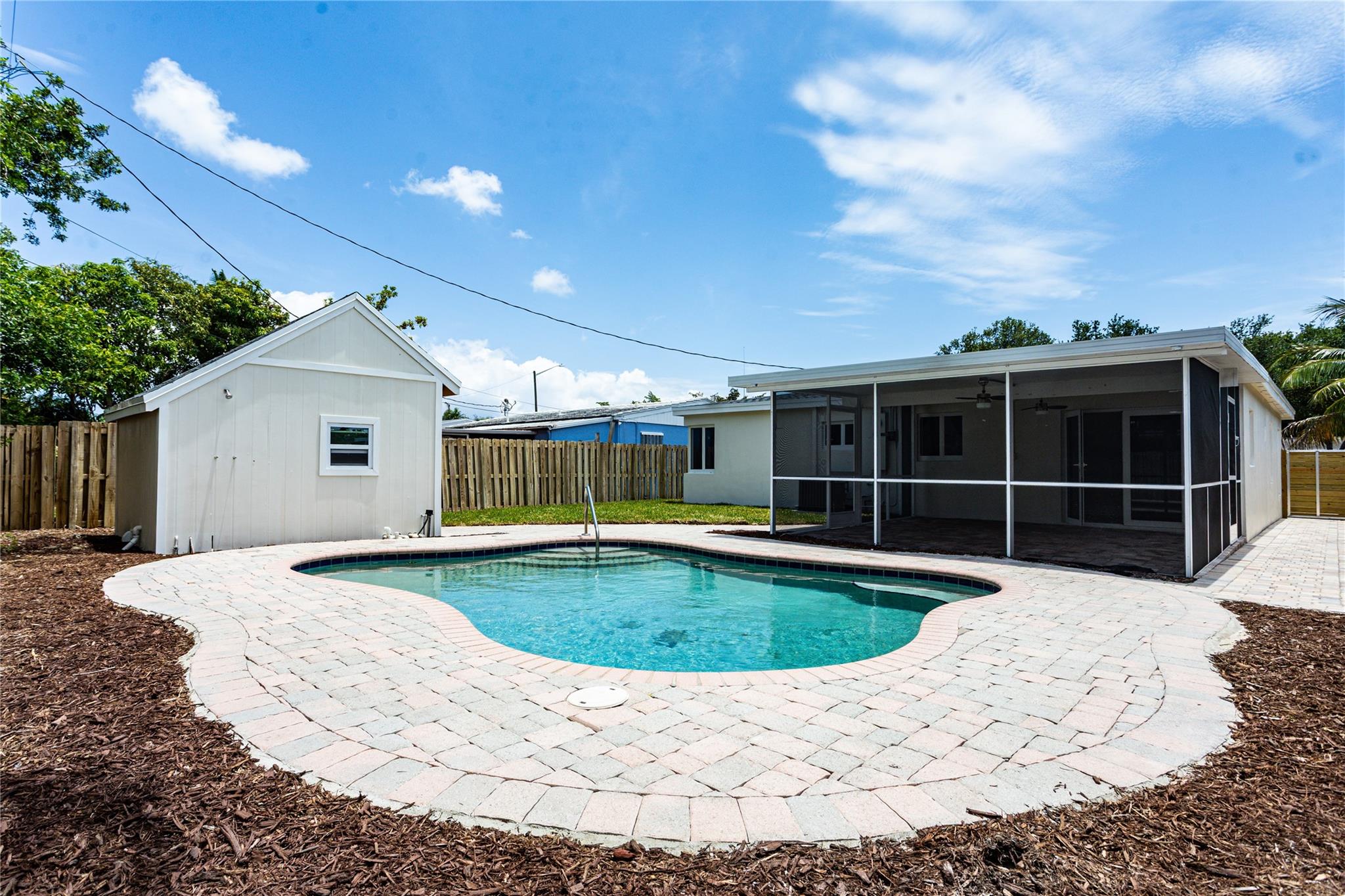 Charming & Fully Updated Florida Home with POOL. This beautifully remodeled home blends timeless character with thoughtful updates. Featuring Saltillo Mexican tile throughout, it offers a warm, inviting ambiance and a bright, open layout. Enjoy peace of mind with a NEW ROOF, impact windows and doors, NEW AC + Ductwork, NEW water heater and PVC plumbing. The updated kitchen includes white shaker cabinets, stainless steel appliances, and a serene view of the backyard. Both bathrooms have been tastefully renovated, and the pool is perfect for soaking up the Florida sunshine. Step outside to a screened-in lanai and newly installed pavers, adding extra charm and space for outdoor entertaining. A detached shed offers endless potential—ideal for a home office, studio, or future guest retreat.
