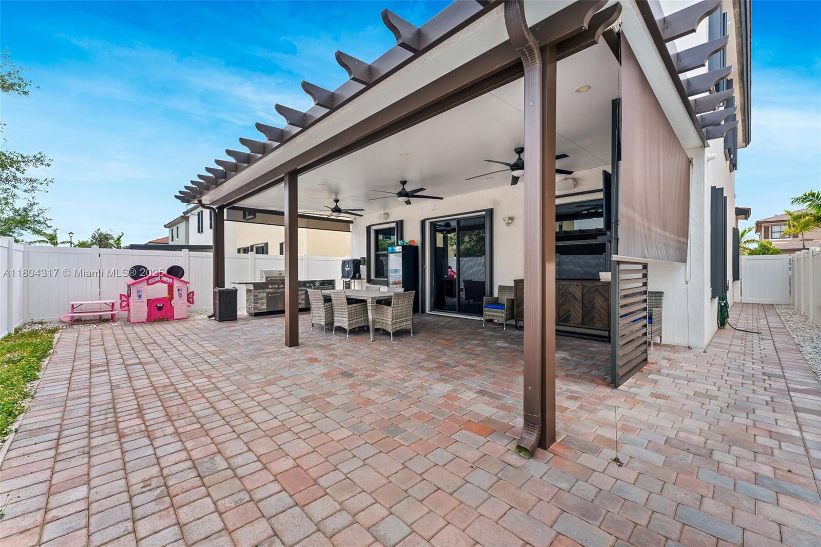 Explore this inviting home, updated for modern living. Enjoy new bathrooms and a reliable 5-ton AC system installed in 2022. Relax under the stylish pergola, with tinted windows and accordion shutters adding comfort and security. The garage features easy-care PBC flooring. Upstairs, find a convenient Jack and Jill bathroom and a master suite with two walk-in closets. The fully paved backyard ensures low maintenance, offering a blank slate for your ideas. This home combines contemporary updates with the chance to make it your own! Call/text listing agent and schedule your tour!
