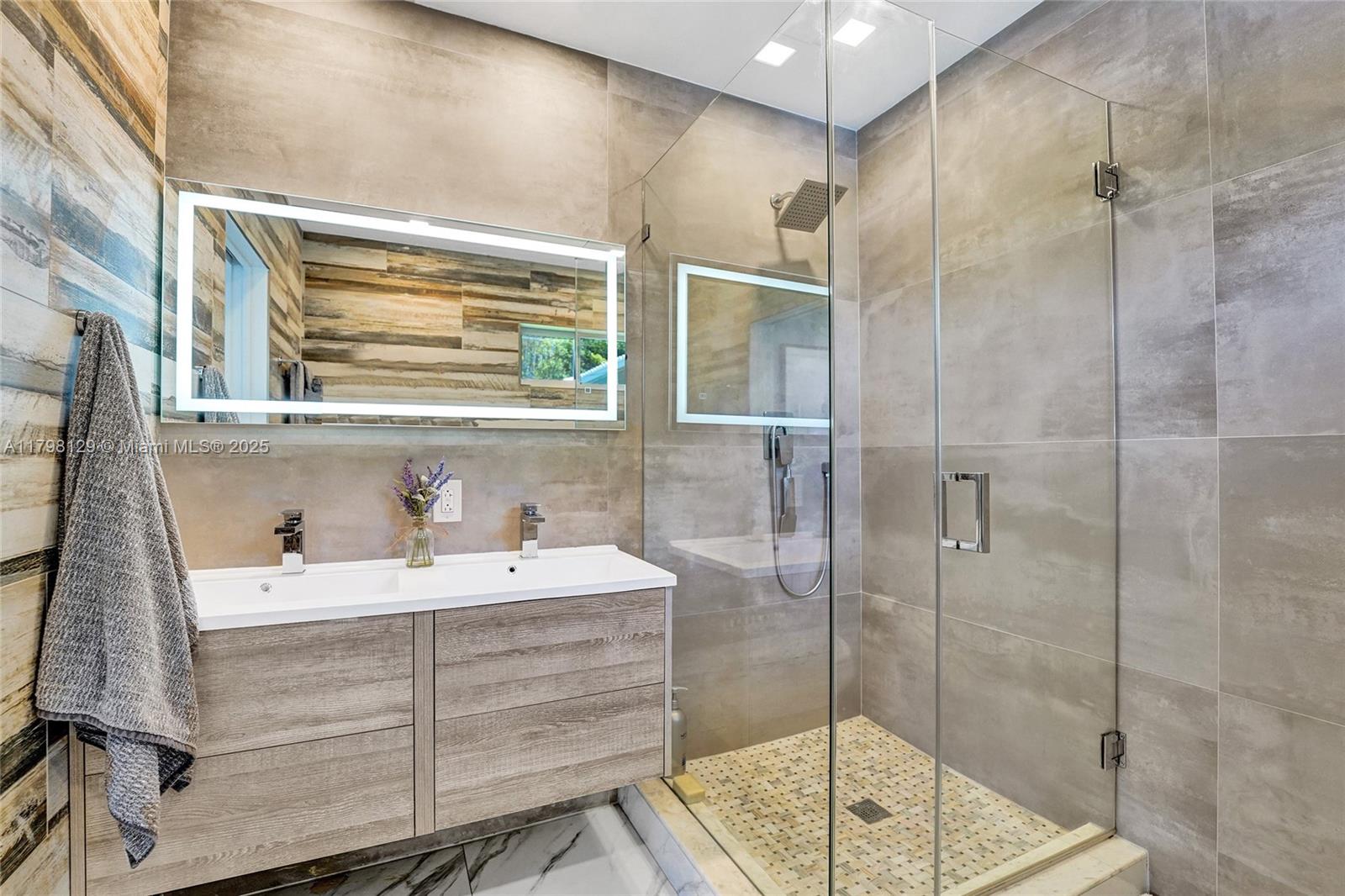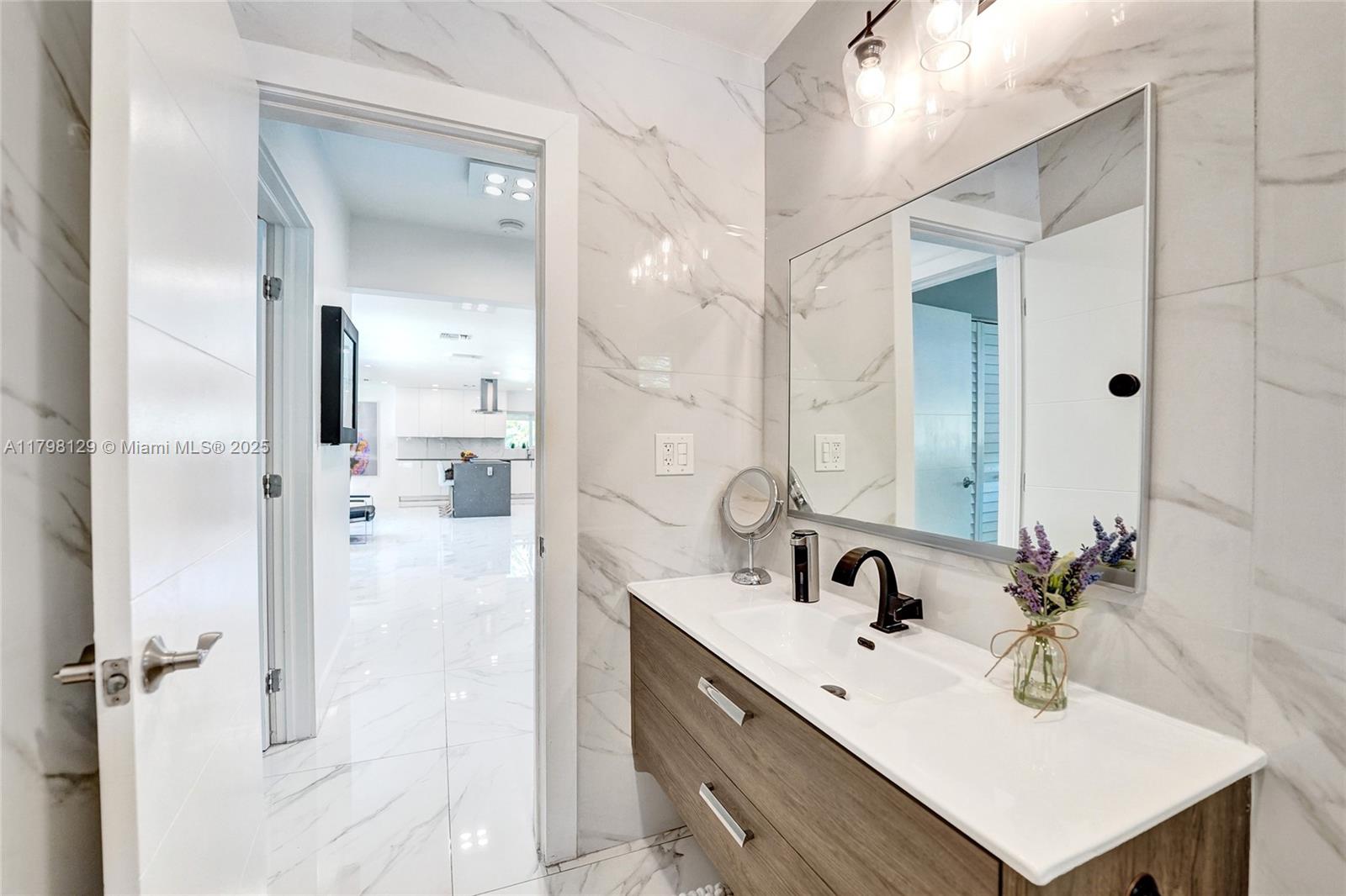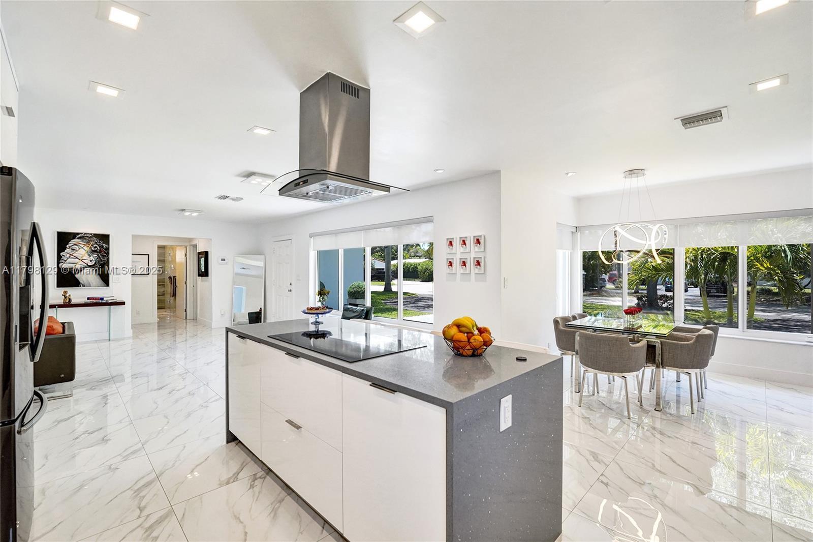Welcome to this stunning modern property located on a rare double corner lot of approx. over 15,000 sq.ft. in the heart of Hollywood Lakes. This home is renovated from the plumbing, electric and interior. This home offers 4BD/3BA, updated kitchen and bathrooms, 32x32 porcelain tiles throughout, open concept split floor plan. A modern kitchen with quartz counters and Samsung appliances with large kitchen island to entertain. Expansive backyard with an oversized salt water pool/heated spa, outdoor shower and turf areas to enjoy,workout and entertain family & friends with delicious barbeques. Centrally located, a short walk to Downtown, Beach, South Lake, houses of worship and parks. This home delivers modern elegance & luxury.