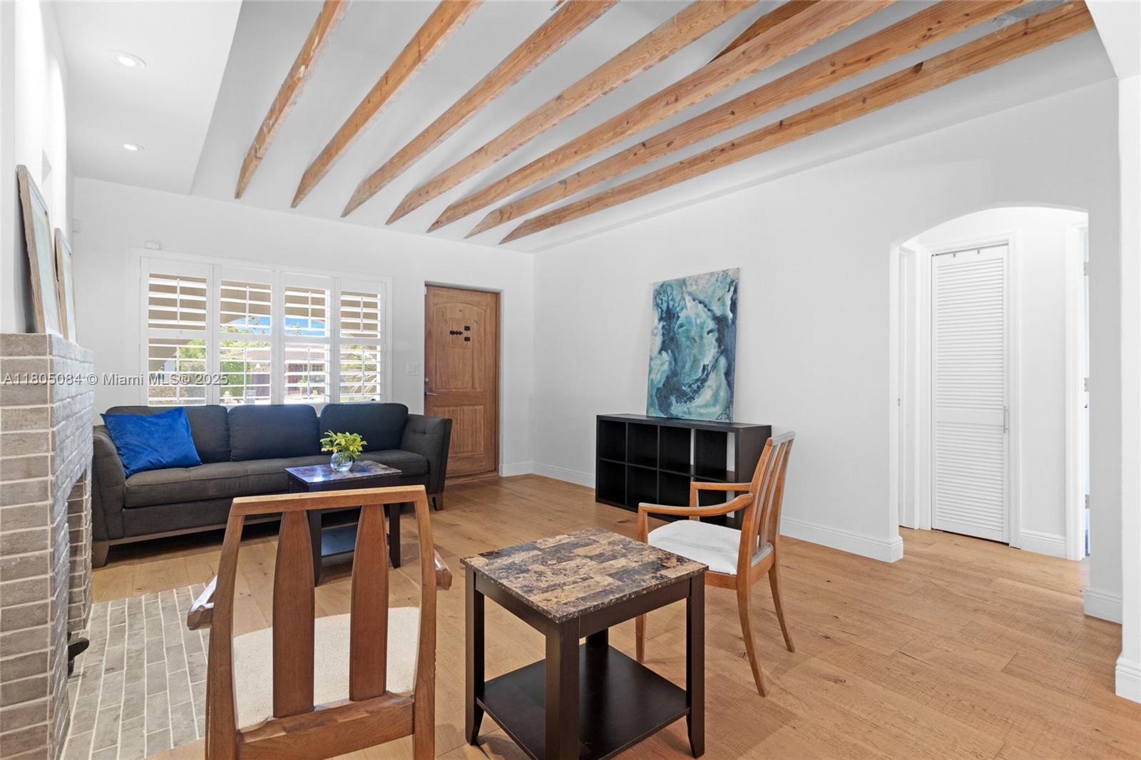 Pending - Backup offers being accepted. - This beautifully designed 2-bedroom, 1-bath home offers a perfect blend of charm and modern comfort. Step inside to soaring cathedral ceilings with exposed trusses that create an open, airy feel. The living space is ideal for relaxing or entertaining. Enjoy the character of Spanish tile on the welcoming front porch and spacious back patio, perfect for outdoor gatherings. The backyard features a pool, a private oasis for warm days. Whether you're lounging by the water or dining al fresco under the stars, this home is made for easy living. Don't miss this unique gem that combines architectural charm with resort-style amenities! S-tile Roof replaced in Dec 2019,