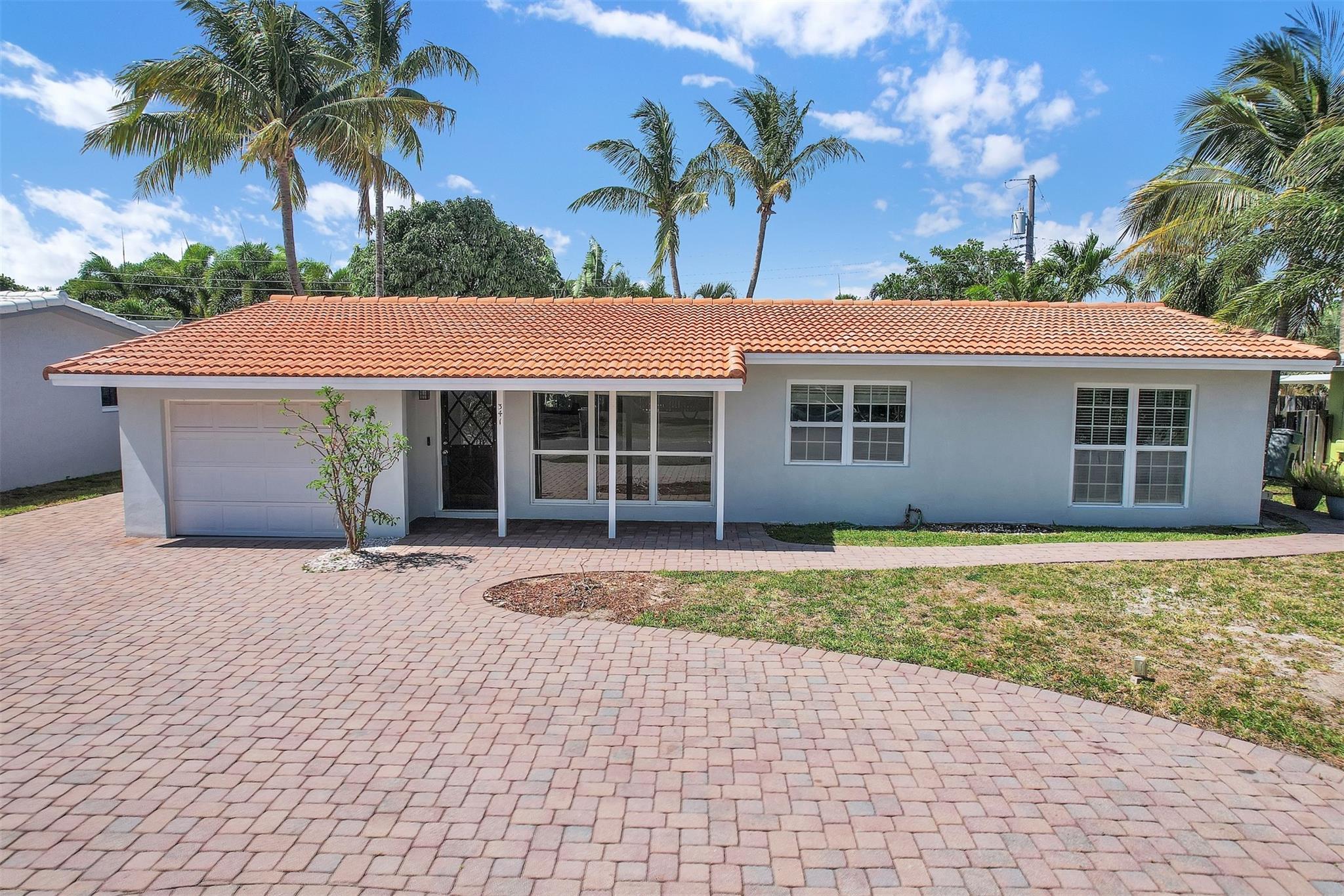Welcome to this charming 3-bed, 2-bath single-family resort style pool home. Kitchen equipped w/ SS appliances and granite countertops. Featuring ceramic tile, laminate floors and a freshly painted interior and exterior, this home is move-in ready. The expansive sunroom invites natural light and offers endless possibilities. Step outside to a uniquely shaped pool, ideal for hosting gatherings or simply unwinding on warm Florida days. Additional highlights include a generously sized laundry room with ample space for storage and organization, a convenient circular driveway, and impact windows with shutters for added security. This home offers space, comfort, and flexibility in a prime location—just minutes from the beach with great potential for your ideal family lifestyle.