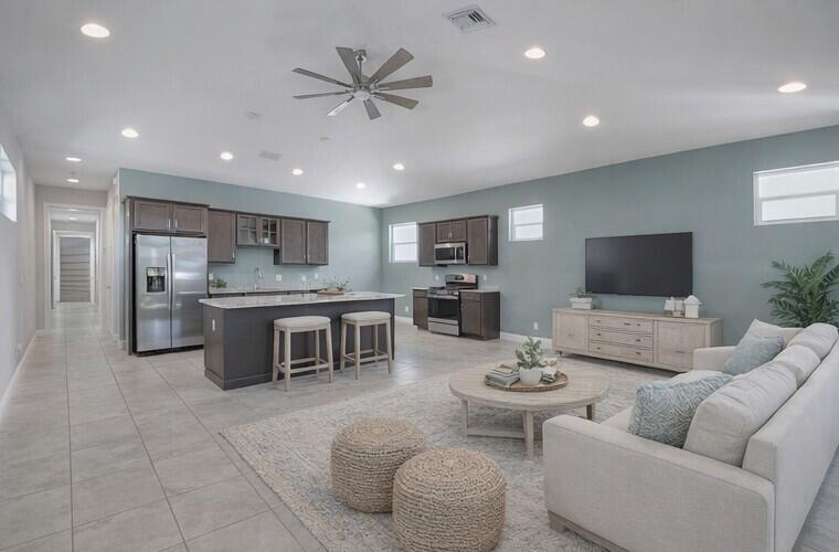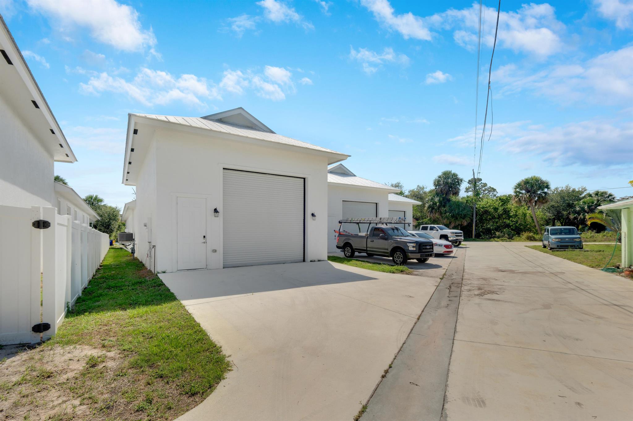 Newer construction, 1,772 Liv sq. ft. CBS home w/ 2022 Metal roof, Hot water heater and HVAC, plus Impact windows, in Port Salerno, NO HOA! 3 bdrm, 3.5 bath home offers the perfect layout for families, guests, or roommates. Each bedroom has a private ensuite bath and a large walk-in closet. The front bedroom has a private entrance, ideal for a home office, in-law suite, or rental potential. Would be great Air BNB Property. Live, work, and play in one place. Bring your toys, there's plenty of room! Oversized rear-entry garage includes a 12' x 12' door, offering ample space to store a boat, RV, or trailer. Located directly across from the Port Salerno Public Boat Ramp, this home is a dream for boating enthusiasts. Enjoy quality finishes throughout including gas appliances, and granite