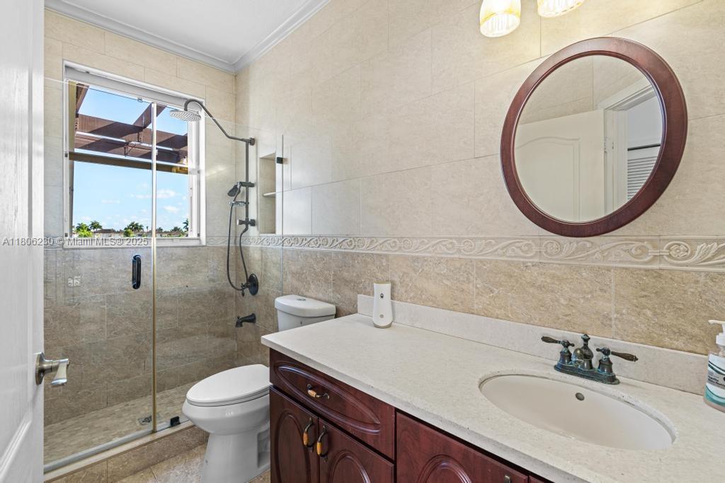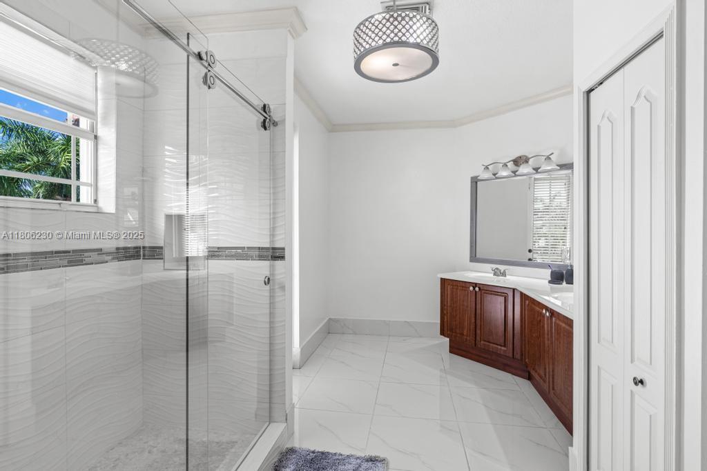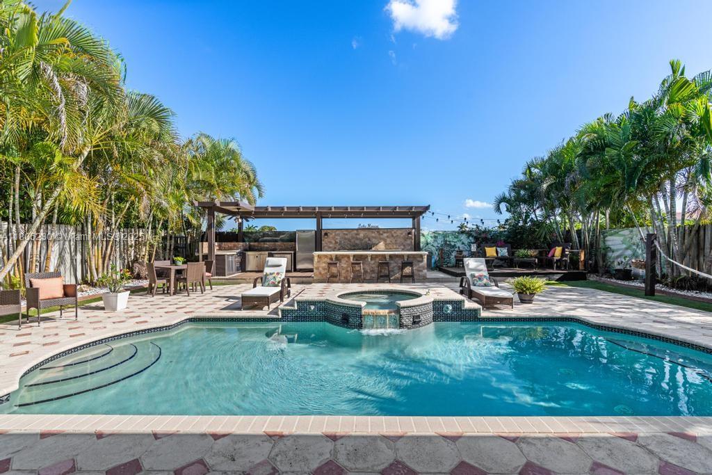 Pictures coming soon!! This home offers a unique layout with 2 master suites, one on the 1st floor and a larger one on the second floor, providing privacy for families or guests. It features 4 beds and 4 baths, while the converted garage is a separate 1-bed, 1-bath suite. The outdoor space is a true oasis, with a saltwater pool surrounded by elegant travertine flooring. An outdoor kitchen under a sleek aluminum pergola includes a grill, gas stove, and a newly added deck, creating the perfect setting for entertaining friends. The home's thoughtful design consists of a standout feature where all second-floor bedrooms can access a balcony with serene lake views. The master bathroom has been remodeled with high-end finishes, enhancing the home's luxurious feel. Make your appointment today!
