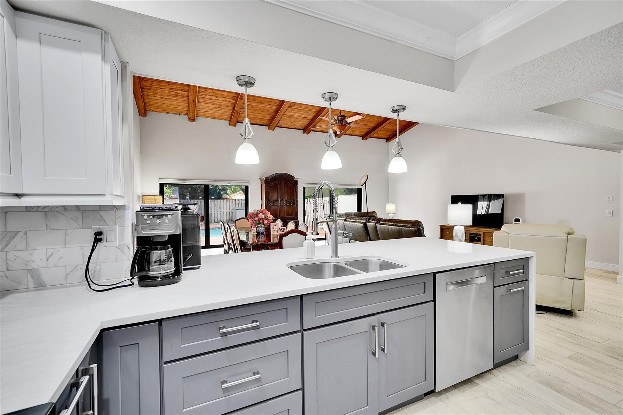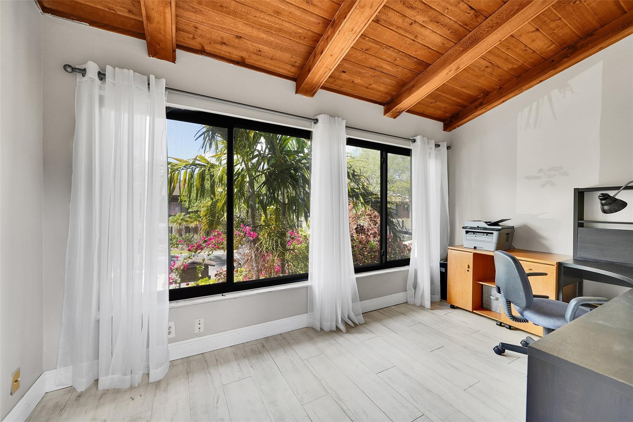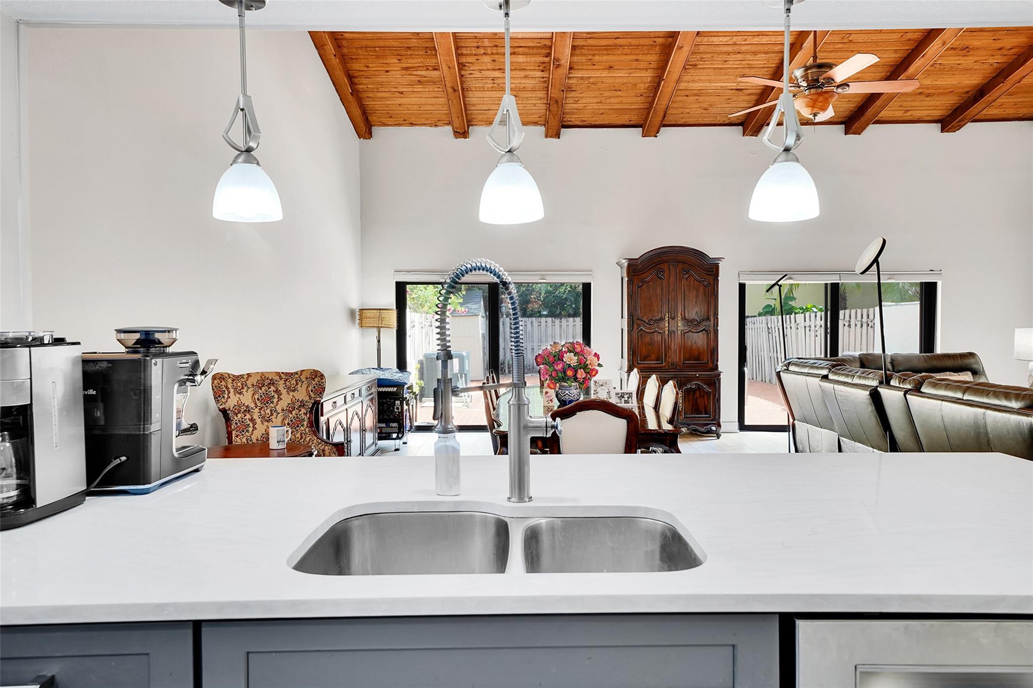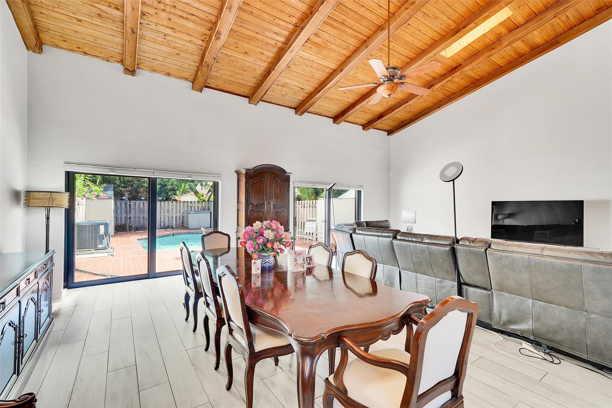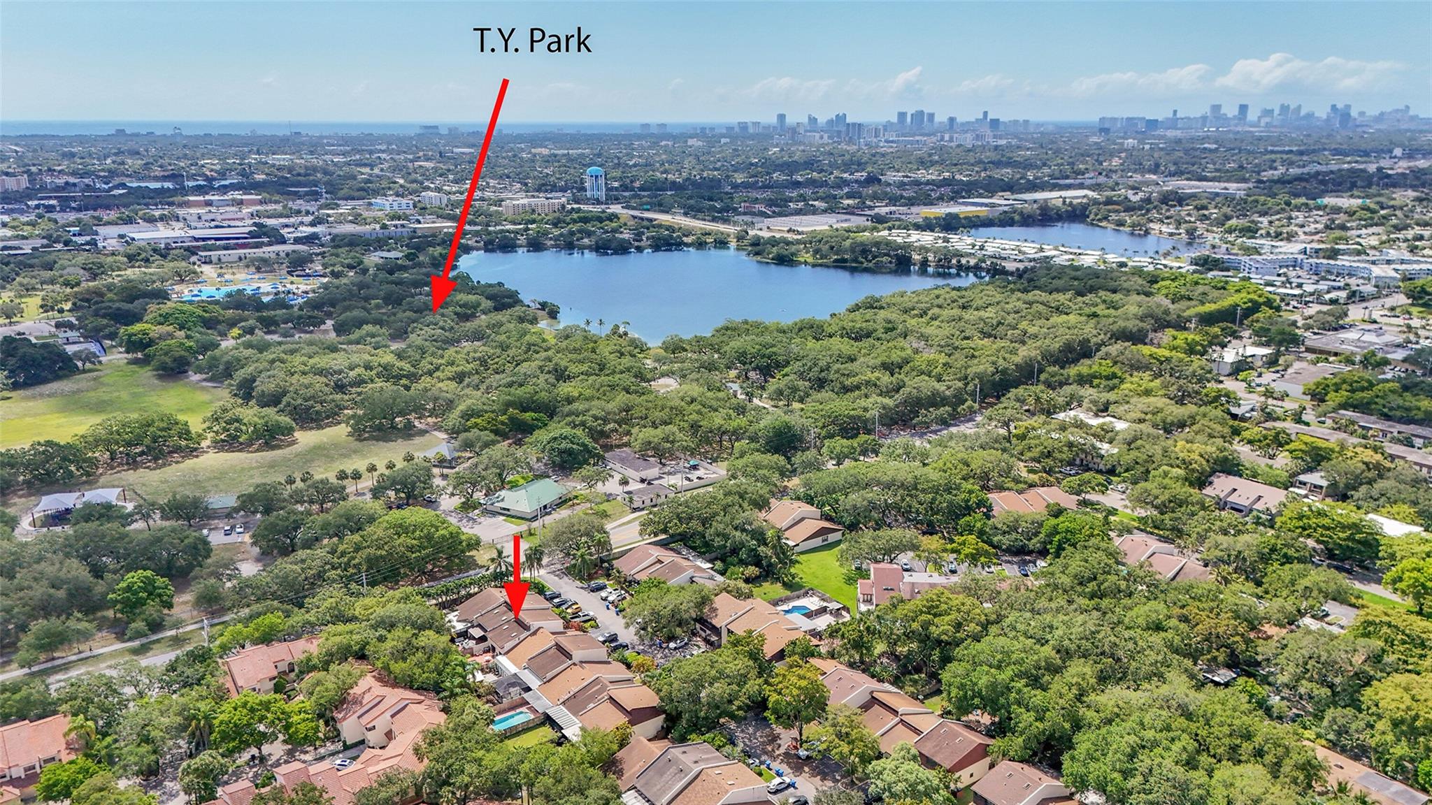 Welcome to 3319 Oak Drive, a rare gem in the desirable Tamerlane community of Hollywood, FL. This updated 3-bedroom, 2.5-bathroom townhome is ideally located directly across from TY Park, with easy access to major highways, the Hard Rock Hotel & Casino, and Emerald Hills Country Club. Step inside to an open-concept layout with soaring vaulted ceilings and skylights in both the living room and primary bedroom, filling the home with natural light. The fully renovated kitchen includes modern cabinetry, quartz countertops, stainless steel appliances, and a large island perfect for entertaining. Enjoy outdoor living in your own private pool — a rare find in this community. The home also features all impact windows and doors, a roof replaced in 2018, and a brand-new A/C unit installed in 2024.