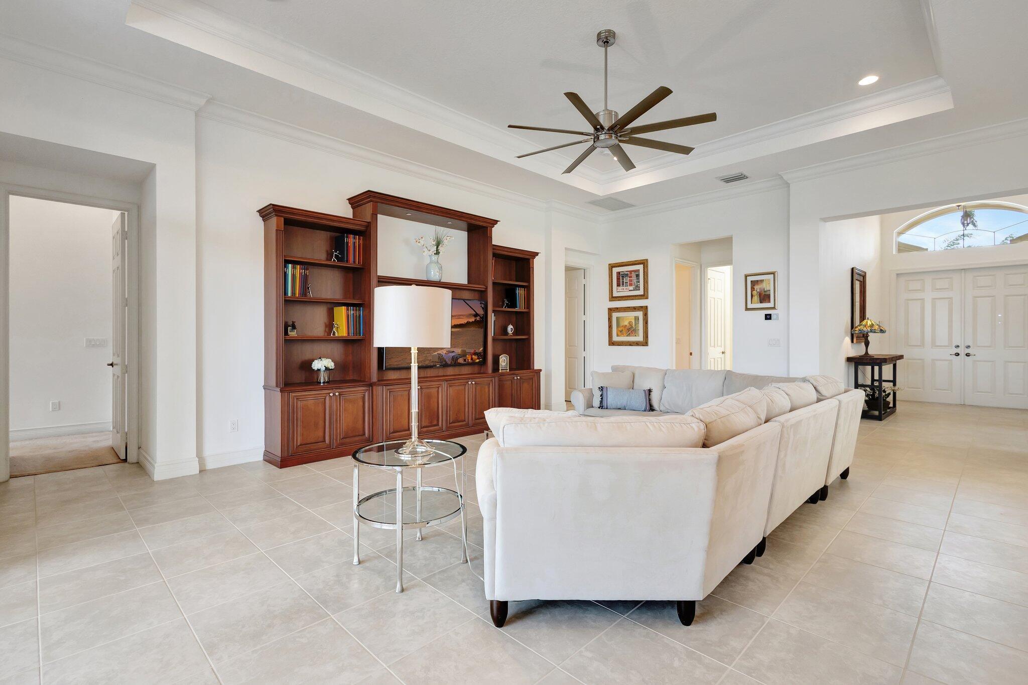 Estate Sale! Rarely Available JULIA Model with Bonus Room on Builder's Premium Lake Lot and Spectacular View of the Fountain from Kitchen, Great Room and Primary Bedroom. Move-in Ready! 3 BR, 3.1 BA, Den (4th BR Opt) plus Bonus Room. Open Floor Plan perfect for entertaining! Formal Dining Room and Spacious Great Room open to Kitchen Area. Glass Doors lead to Expanded Covered Screened Patio overlooking the Lake. Impact Glass Windows and Doors. Custom Cabinetry in Great Room and Den. Tile Flooring in Main Living Area, Ceiling Fans, Hi-Hats throughout. Chef's Kitchen features Wood Cabinets, SS Appliances, Granite Countertops-Backsplash, Breakfast Bar, Spacious Center Island, Plenty of Storage with Pullouts plus Pot and Pan Drawers, Extended Built-in Pantry, Casual Dining Area with Lake View.