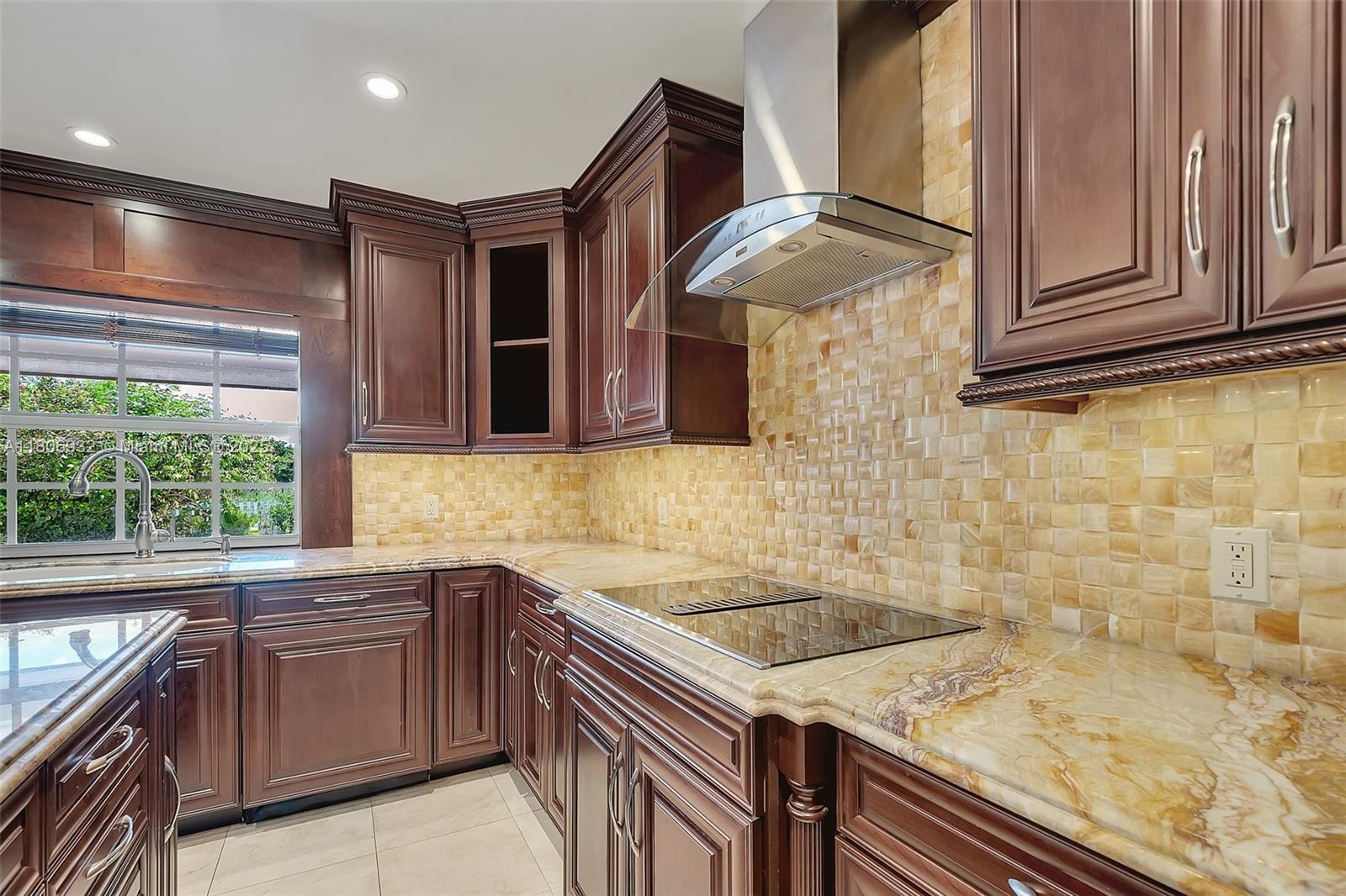 Custom, rock lathe and plaster constructed updated beauty. Entertain in style with a one of a kind kitchen featuring a wine cooler, double oven, Jennaire stove top, stunning cherrywood cabinetry with soft closing drawers and cabinets, pull out pantry, double oven, granite & onyx backsplash, island, and top of the line appliances. Charming crown moldings, French doors, & stunning baths with high end Kohler fixtures. Spacious family room features a wood burning fireplace and wet bar/ice maker. Enjoy the primary bath whirlpool jet tub w/shower, double onyx sinks, stunning granite counters, and door to lanai. The lovely pebble tech pool is surrounded by interlocking brick paver patio. Unbeatable location near turnpike, Costco, numerous Publix stores, fine dining & excellent schools.