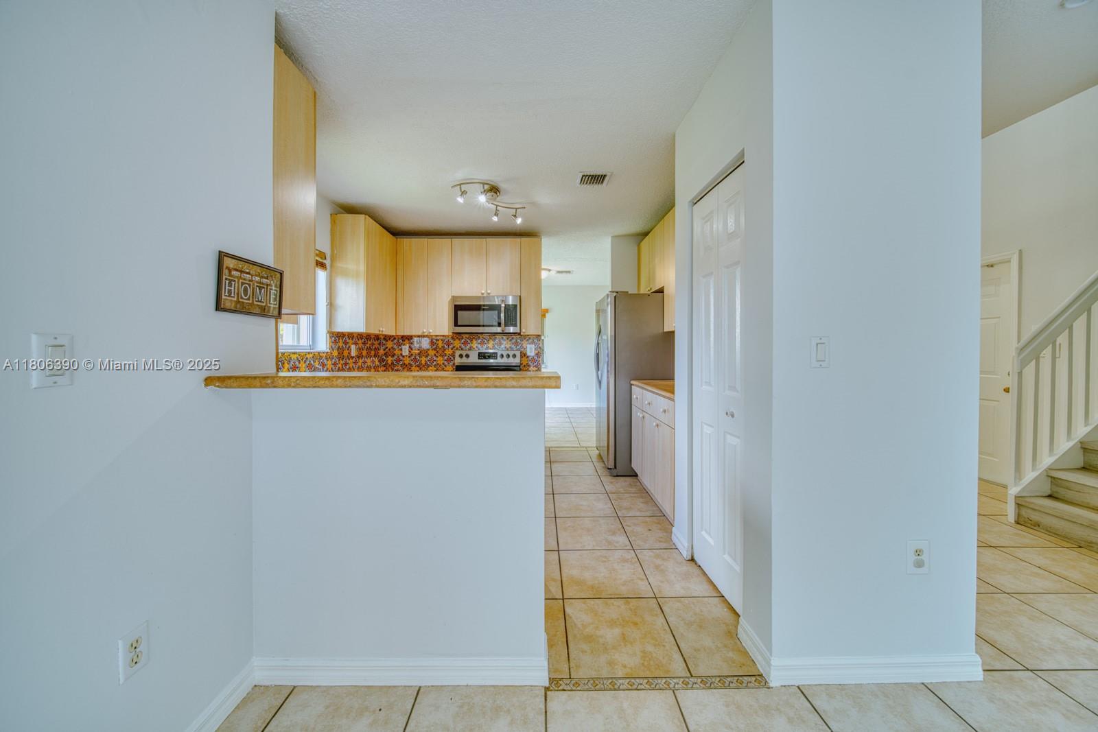 Welcome to this Move-in ready 3 bedroom 2.5 bath, 1 car garage home. Bright foyer entrance, ceramic tile flooring throughout the main level, an interior laundry room and a freshly painted interior. The second floor boasts elegant luxury vinyl plank flooring, adding a modern touch. Master bedroom featuring walk-in closet and ensuite bathroom. Enjoy the comfort of a spacious family room, and a private patio with a fully fenced backyard perfect for relaxing or entertaining. Located in a desirable community with a low homeowners association fee. Minutes from Black Point Marina, Shopping centers, popular restaurants and the Florida Turnpike. This is a true gem easy to show by appointment. Contact us for your personalized tour.