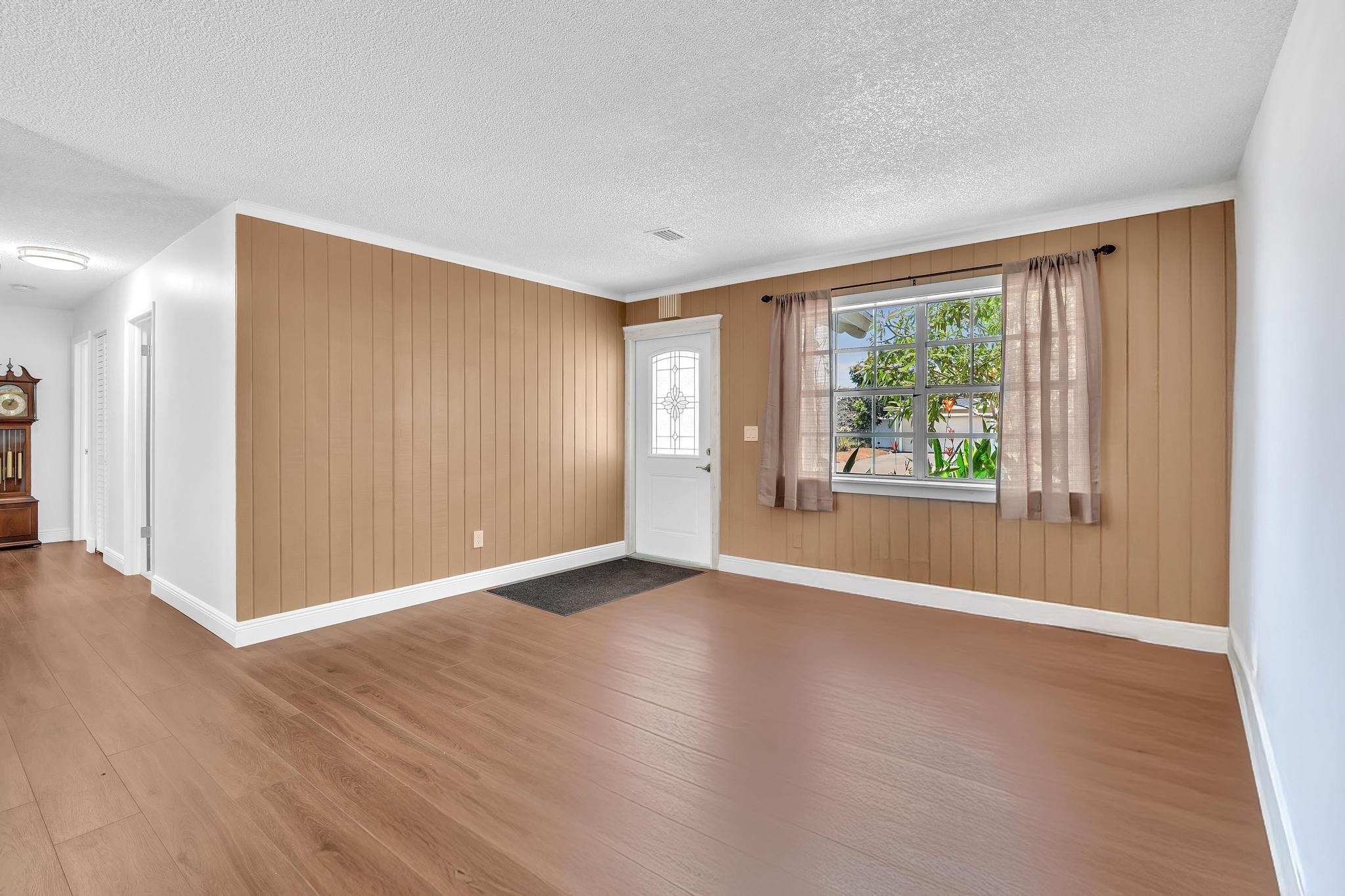 Experience comfort and charm in this inviting 3-bedroom, 2-bath single-family home in a quiet, family-friendly neighborhood in Lauderhill. This lovely and cozy home features a fully updated. Updated kitchen cabinets with wood cabinets and a new look. Unique Teak countertop with shellac finish. Teak is very water-resistant. New top-of-the-line stainless steel appliances. Stunning porcelain tile, waterproof wood flooring, and new bedroom carpet. Both bathrooms are updated beautifully. Spacious master suite with a large walk-in closet, one-car garage, Hugh's private backyard, Room for a pool, excellent for entertainment. Close to everything: Walking distance to school. Airport, highways, restaurants, and a mall. NO HOA. Move-in condition. Walking distance to school.