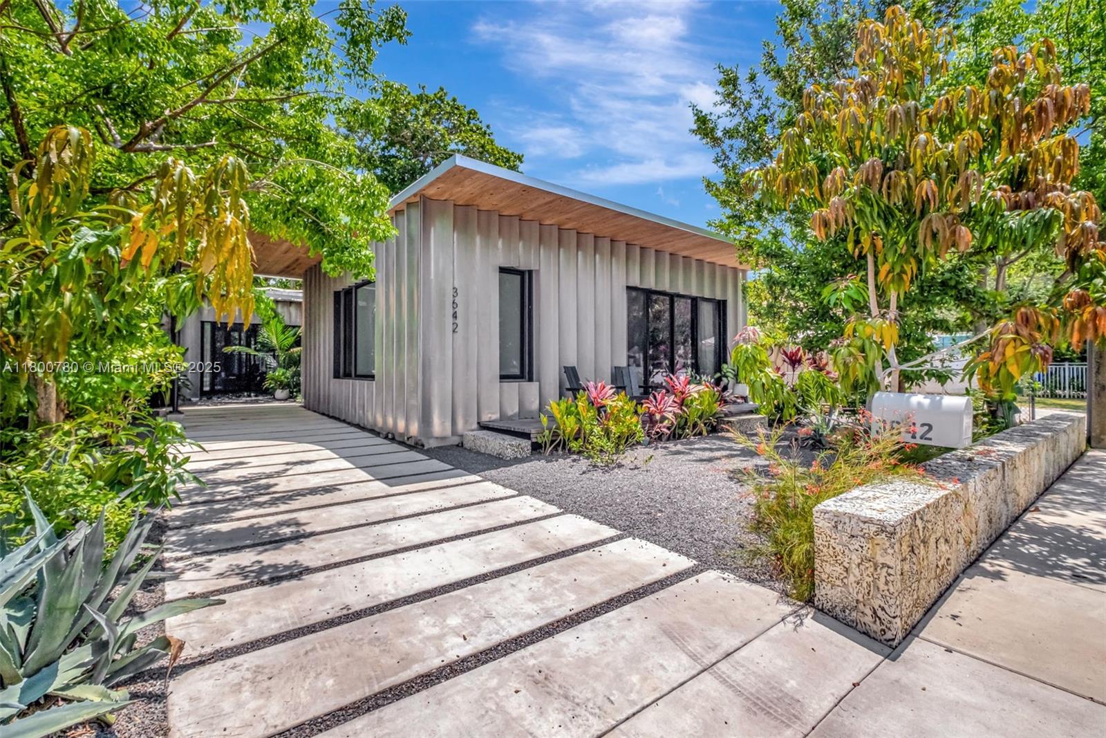 House In A Garden is a distinctive 4-bedroom, 3-bath pool home in Coconut Grove, designed by renowned local architecture firm Atelier Mey and crafted from sustainable mass timber with soaring 11'+ ceilings throughout. This thoughtfully designed single-story home pays homage to the Grove’s Bahamian roots with a full-width front porch that fosters a connection to the community. At its heart, an open-air courtyard brings natural light and lush garden views into every room. The layout wraps around the courtyard, promoting passive cross-ventilation from the south pavilion through the living spaces. Blending indoor comfort with outdoor tranquility, the home offers timeless architectural appeal. Near top schools, parks, dining, and all the charm of Coconut Grove’s ongoing renaissance.