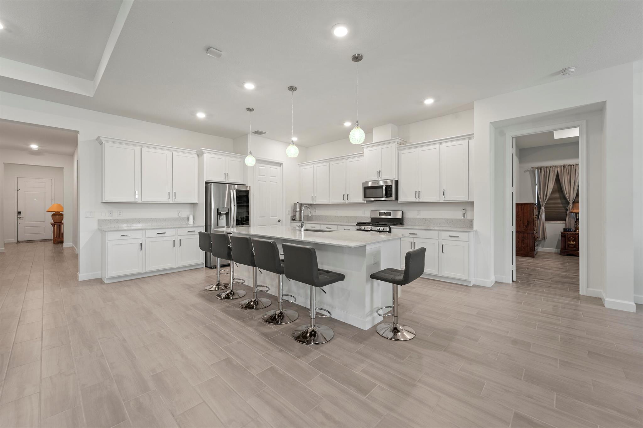 Welcome to this stunning 2021-built modern home that perfectly blends luxury, comfort, and convenience. With over $70,000 in premium upgrades, this meticulously maintained home offers elevated living both inside and out.Step inside to discover beautiful new tile flooring throughout. Also included is a upgraded LG refrigerator and a just over 1 year old LG washer and dryer, all designed for modern living.Enjoy peace of mind with a whole-house generator, ensuring uninterrupted power during any outage. The new epoxy-coated garage floor adds style and durability, while the full gutter system helps protect your home year-round. One of the standout features is the extended patio, expanded by 276 square feet, providing an ideal outdoor retreat for entertaining or relaxing in comfort. Enjoy!