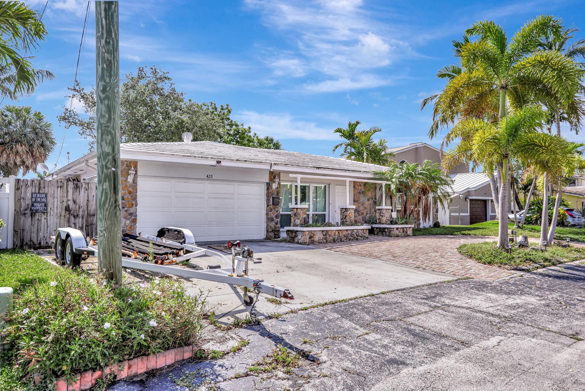 Prime investment opportunity in desirable Snug Harbor! Fantastic location near Atlantic Blvd and Federal Hwy—walk to dining, shops, and just 1.5 miles to the beach! This waterfront property offers 70 ft on a 100-ft-wide canal with privacy, a 50-ft dock, and 12-ft bridge clearance. The solid CBS home features impact windows, central AC, fireplace, terrazzo floors, indoor laundry, and an oversize two-car garage. Convert the garage to add over 400 square feet of living space without adding to the roof or foundation. Plenty of space for a pool and room to reimagine or rebuild. Fully renovated homes in this area command up to $1.6MM, offering huge upside potential. Invest, remodel, or enjoy as-is—this is your chance to own a piece of South Florida’s waterfront future!