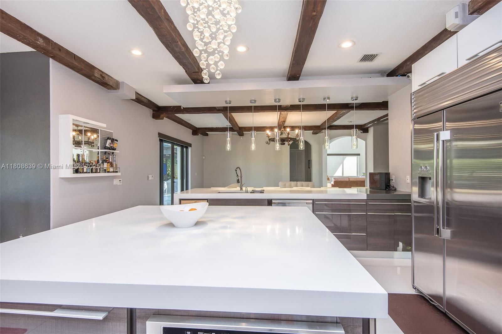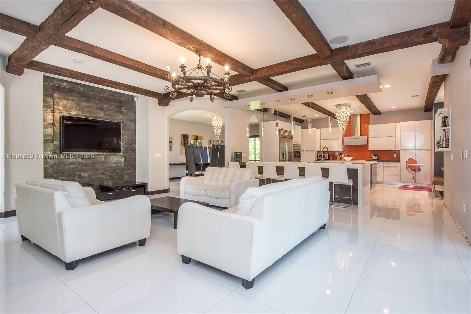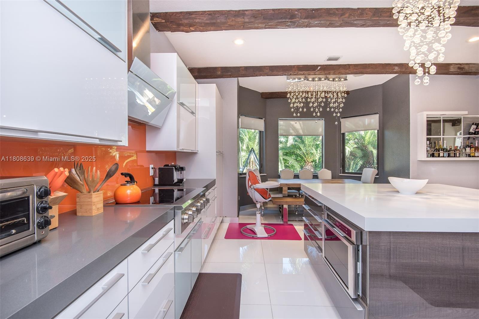 Truly one of a kind. In the gated community of Cutler Cay, this 6/5 offers a modern and upscale design. It has hurricane impact windows and has been completely renovated with the latest fixtures. The spectacular Italian kitchen has Monogram SS appliances, quartz countertops, a glass full backsplash, an island, and an eat-in area. The spacious primary suite has expansive walk-in closets. Marble patio deck and gazebo with built-in BBQ and bar area with quartz countertop, Speakers throughout the house, and electric shades. The HOA includes alarm, Internet, cable, lawn maintenance, access to the spectacular Clubhouse with gym, heated pool, tennis and basketball court, and kids' playground. It is very easy to show.