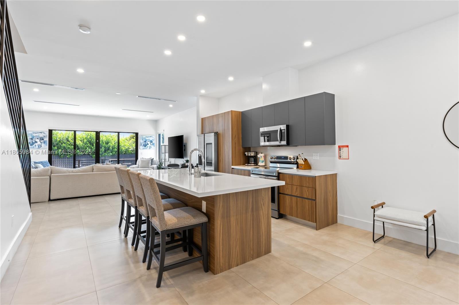 Experience modern luxury in this stunning corner-lot townhome located in Fort Lauderdale’s desirable Lake Ridge neighborhood—home to Bijou Lake Ridge, a one-of-a-kind modern new construction development known for its bold design and impeccable craftsmanship. With over 2,300 sq ft of thoughtfully designed living space, this 4-bedroom, 3.5-bath residence offers high ceilings, hurricane impact windows, and high-end finishes throughout. The first floor features sleek porcelain tile, while the second level showcases warm wood-style vinyl flooring. A chef-inspired kitchen is equipped with smart stainless steel appliances and opens seamlessly to the living and dining areas. Large sliding glass doors lead to a private turfed backyard and sparkling pool, perfect for entertaining or relaxing.