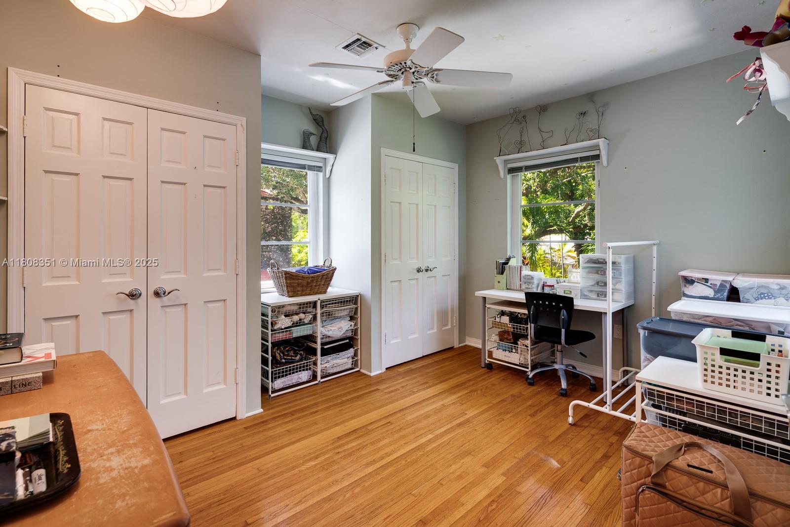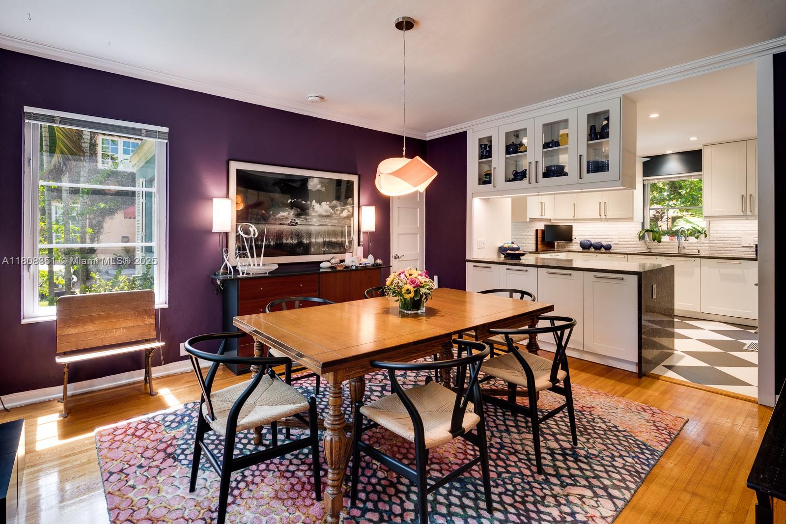 Modern living in a classic 1940's two-story, center-hall Colonial. Impeccably updated and located in the coveted "Golden Triangle" neighborhood, sought after for its walkability to many of Coral Gables' most treasured venues, including the Biltmore Hotel, Venetian Pool, Coral Gables Library, Youth Center and others. 2,469 living area sq. ft. on a 100' X 108' lot planted with several rare palm species. 4 bedrooms and 3.5 bathrooms with 3 bedrooms and 2 baths (including primary suite) upstairs, 4th bedroom/bath downstairs. Brand new roof, new kitchen, new baths, new circular paver driveway, impact windows and doors, updated electrical service and updated plumbing throughout. Foyer, hardwood floors, fireplace, large family room, 2 car garage. Room for a pool.