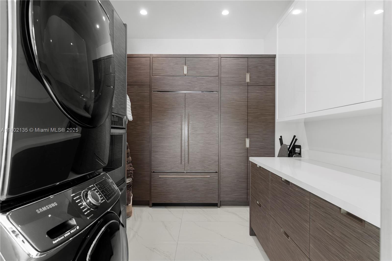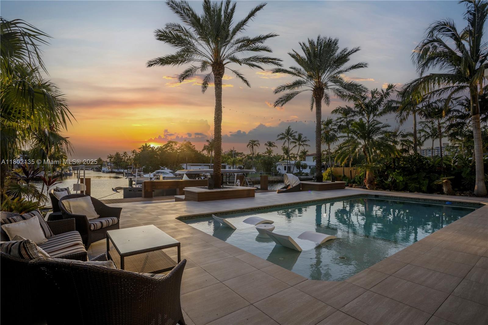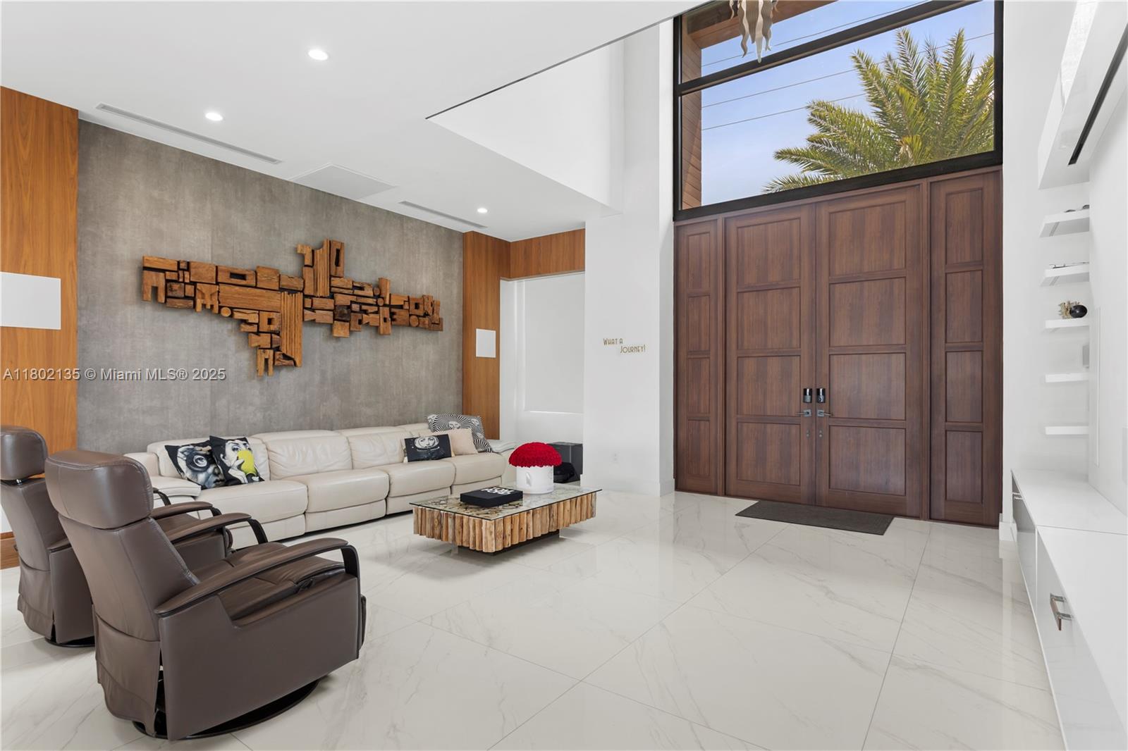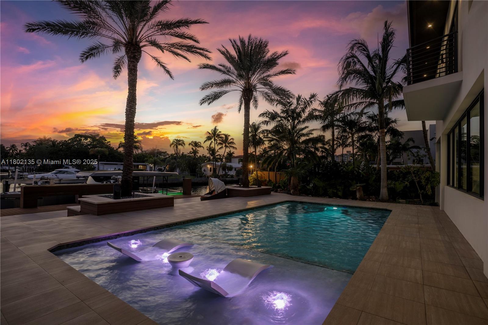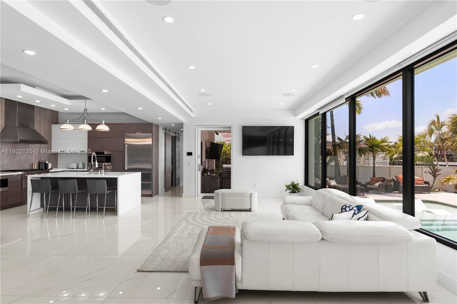 Stunning brand-new waterfront estate in Keystone Point! This elevated contemporary masterpiece features 5 beds, gym, 2 offices, panic room, 2 laundry rooms (one on each floor), and a 4-car garage. Enjoy jaw-dropping sunsets over an ultra-wide canal with no fixed bridges and a 50,000 lb boatlift. Luxury abounds with top-tier finishes, whole-home water filtration/purifier, heated saltwater pool, and jacuzzi. The outdoor oasis includes a summer kitchen with gas grill, smokers, ice maker & more. Primary suite overlooks the water and sunset. Minutes to Bal Harbour, beaches, and fine dining.