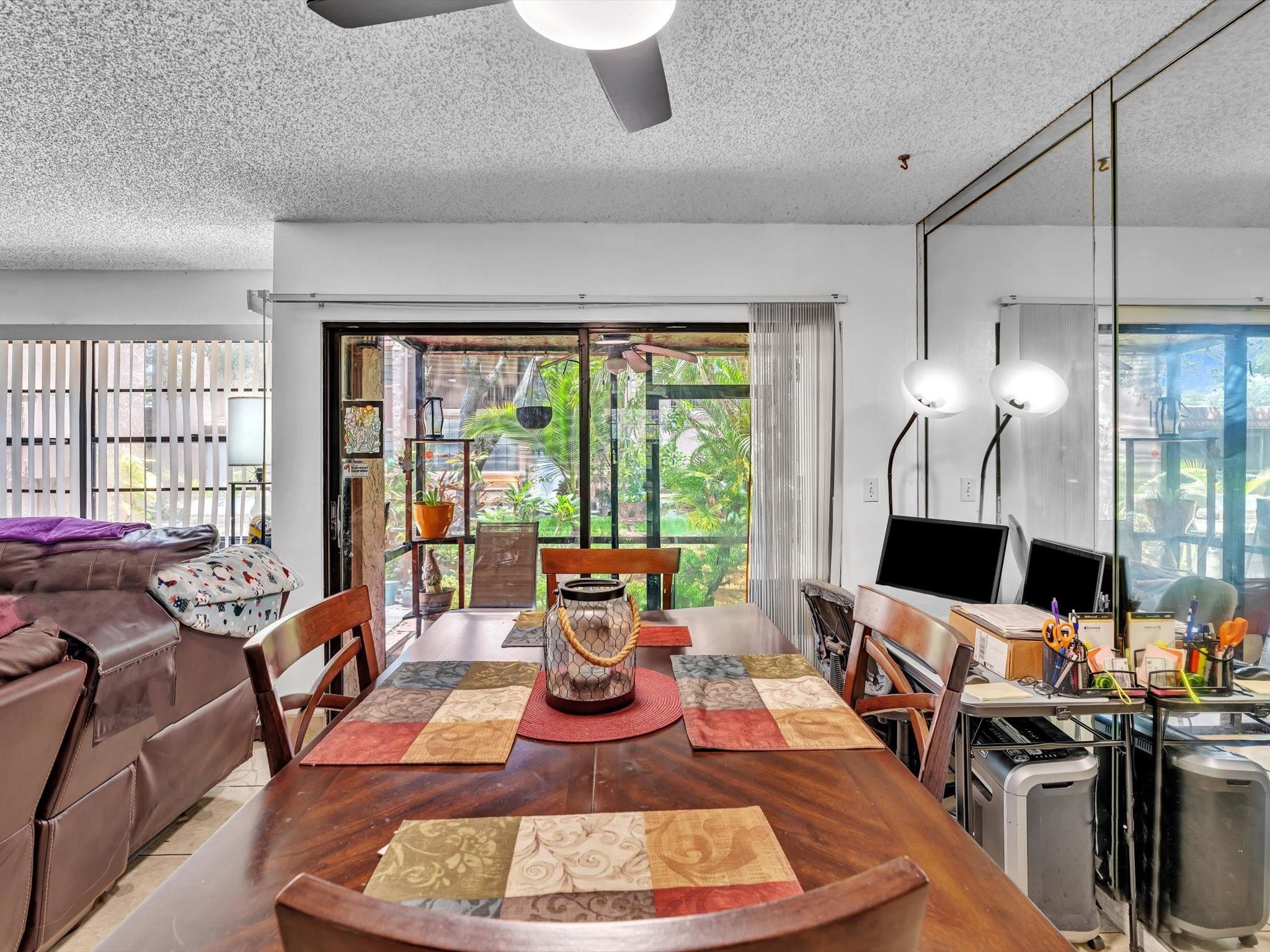 Nestled in the heart of Davie, this delightful 2-bedroom townhouse at 12 Toledo Court offers a serene living experience with the convenience of city life. Step inside to a spacious living area bathed in natural light from expansive windows, creating a warm, inviting atmosphere. The open-plan design seamlessly connects the living room to the dining area, which peers out onto a screened patio. Beyond, an extended paver patio is embraced by mature landscaping, offering a tranquil outdoor retreat. Upstairs, two cozy bedrooms await, accompanied by a full bathroom, ensuring privacy and comfort. A convenient half bath downstairs caters to guests and daily living. Unlike many, this home boasts an in-unit laundry closet, adding to the ease of your daily routine.