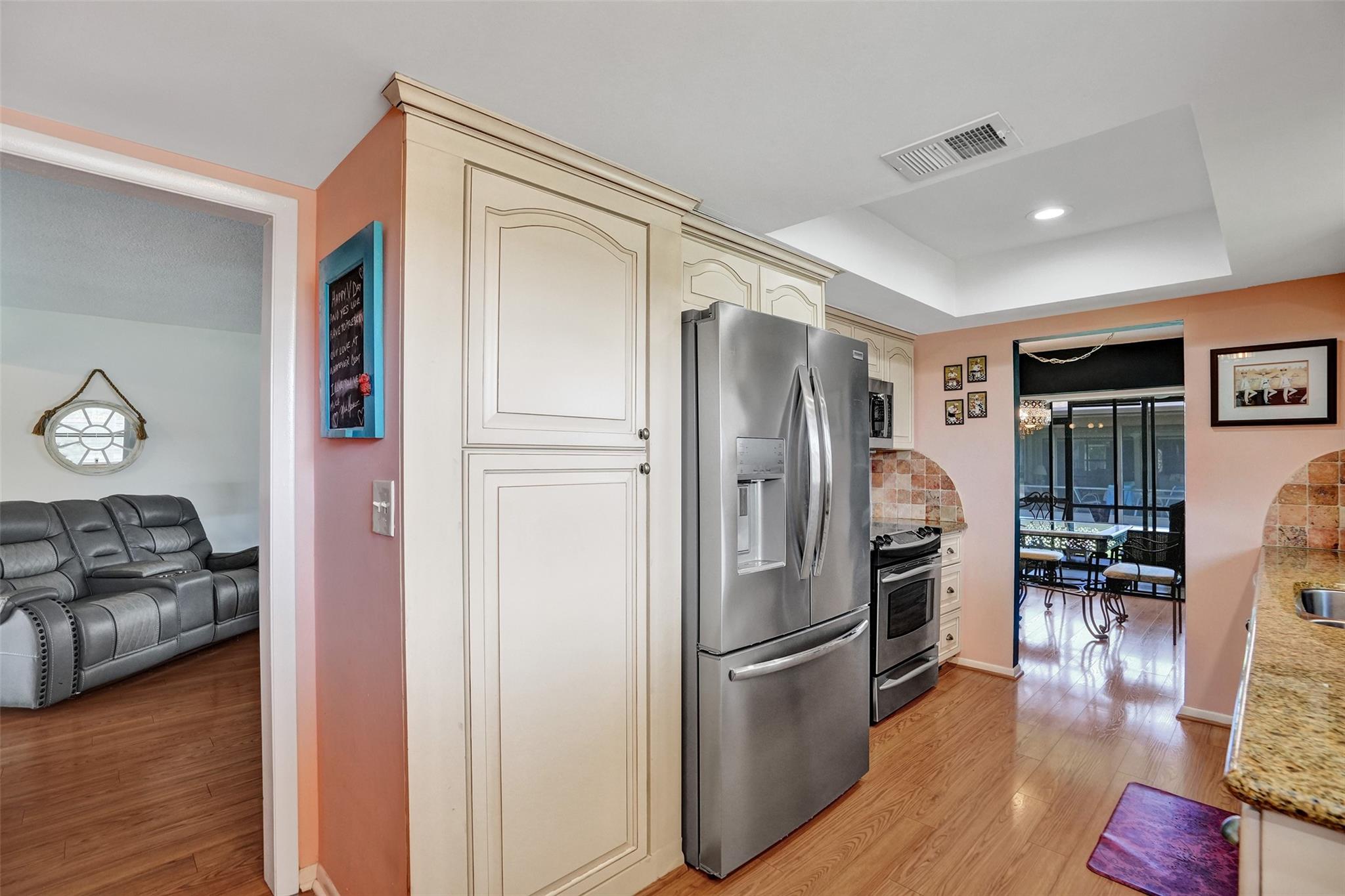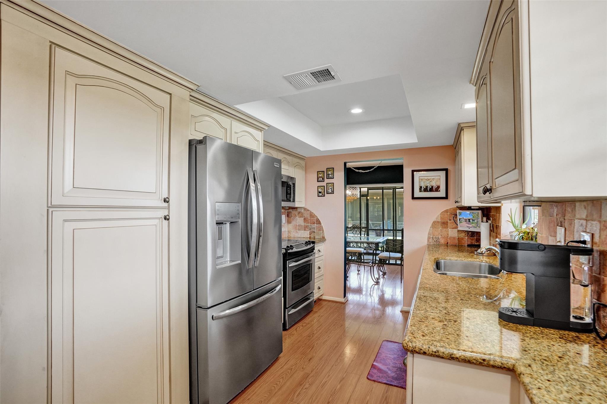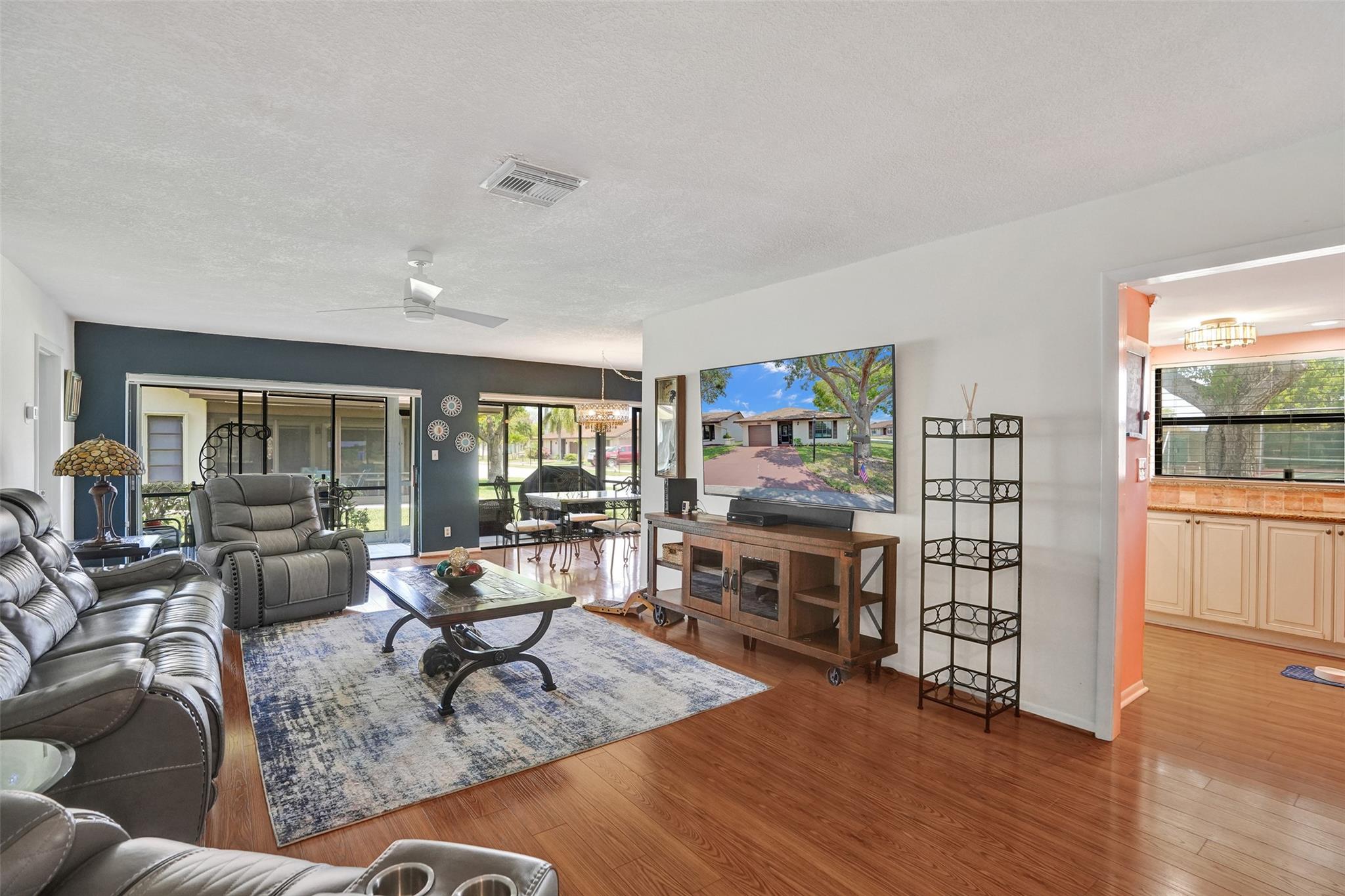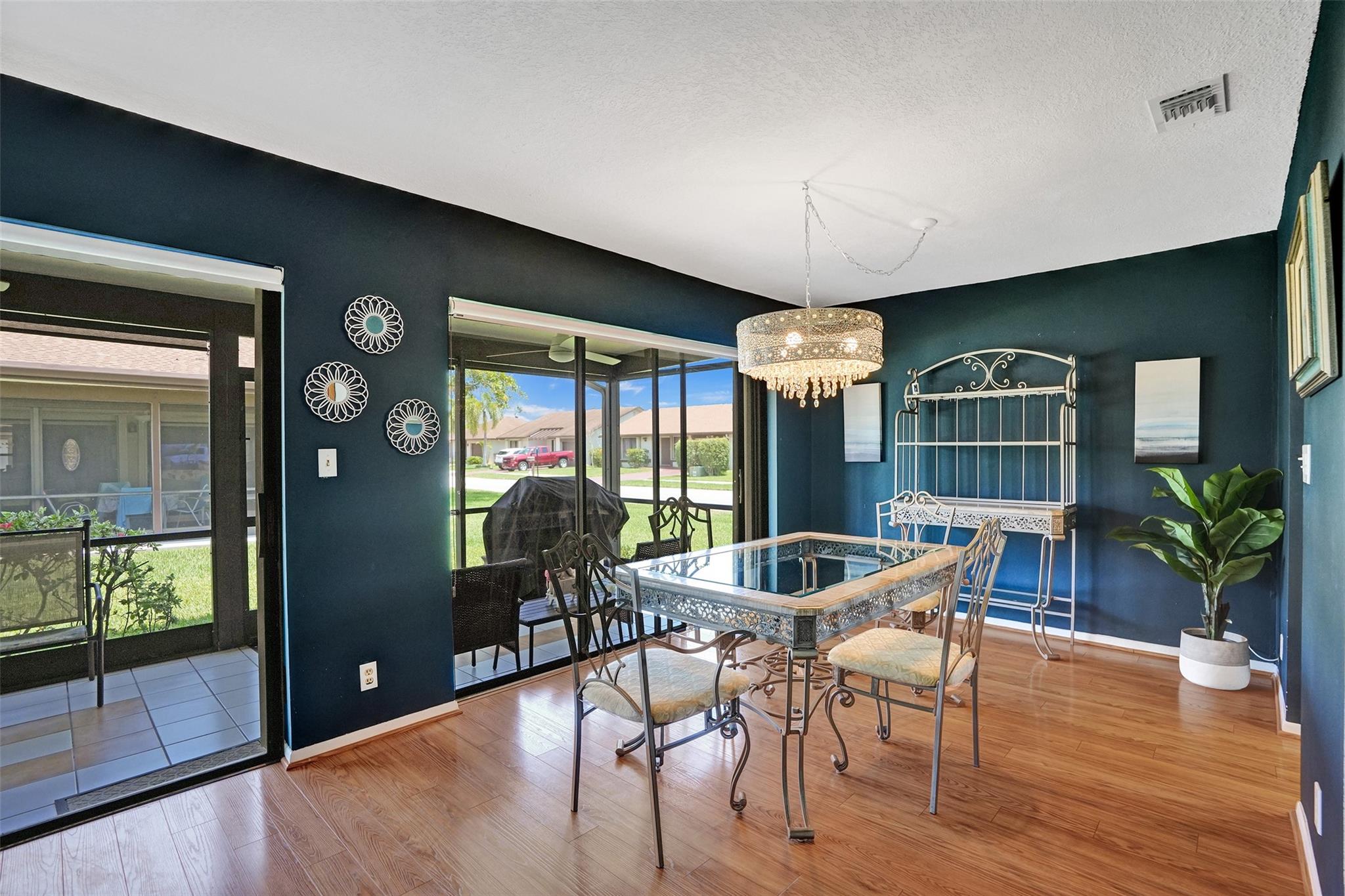 Beautifully updated 2 bedrooms & 2 bathrooms Meadow Ridge model on a large corner lot with mature trees, just steps to the pool, tennis/pickle ball courts & clubhouse. In the sought-after Meadows of Crystal Lakes. This home features split floor plan w/laminate flooring throughout living room, formal dining area, kitchen & primary bedroom. The kitchen boasts off-white cabinetry, generous countertop space w/granite countertops & stainless steel appliances. Primary bedroom features an updated bathroom, & a walk-in closet w/custom cabinetry. The second bedroom is carpeted & located near second bathroom. Enjoy the large, tiled, screened-in patio for year-round outdoor living. (ASSUMABLE MORTGAGE OF APPROXIMATELY $185,000 AT 4% INTEREST RATE. BUYER MUST QUALIFY TO ASSUME) OWNER VERY MOTIVATED!