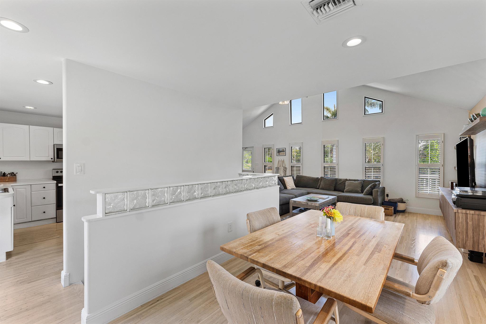 Truly one-of-a-kind, this two-story home sits on a tranquil, tree-lined street that ends at the Intracoastal in East Boynton Beach. Thoughtfully designed with character throughout, the home features unique elements like a cozy sleeping loft with ladder access, inviting front and back decks, and smart built-ins.The upstairs living area overlooks an expansive yard filled with swaying palms and mango trees, creating a serene, tropical retreat. Each bedroom offers its own distinct charm, and the oversized 2-car garage provides ample space for storage or hobbies. Recent updates include new appliances, modernized bathrooms, and a low-maintenance xeriscaped front yard.